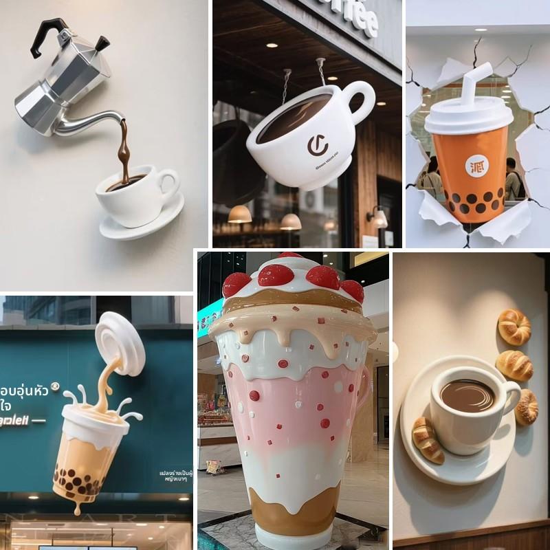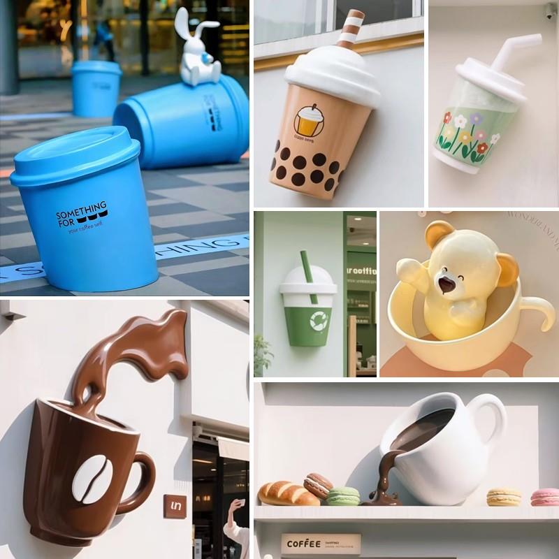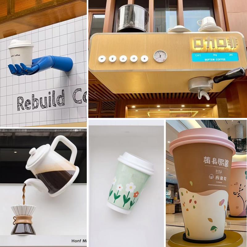 玻璃钢立体咖啡杯雕塑定制网红奶茶店门头装饰品商场店铺引流摆件