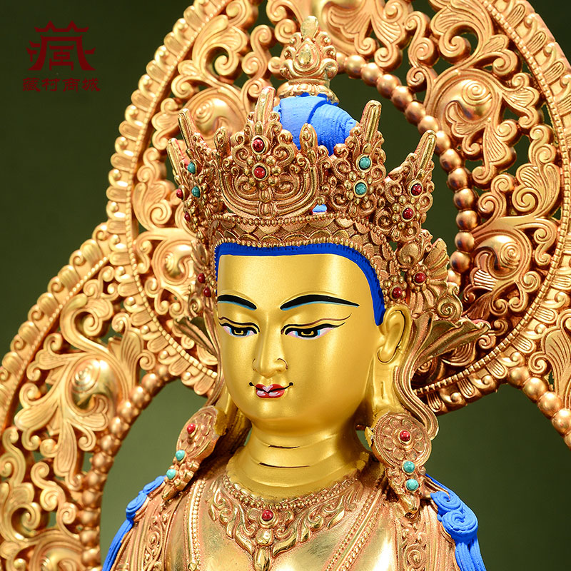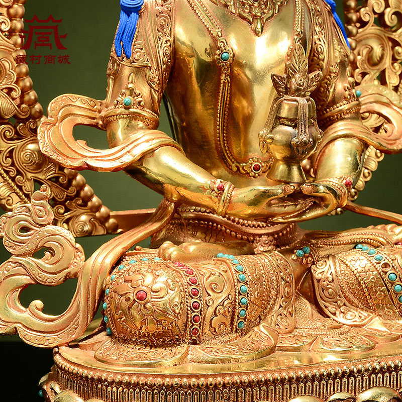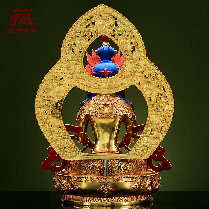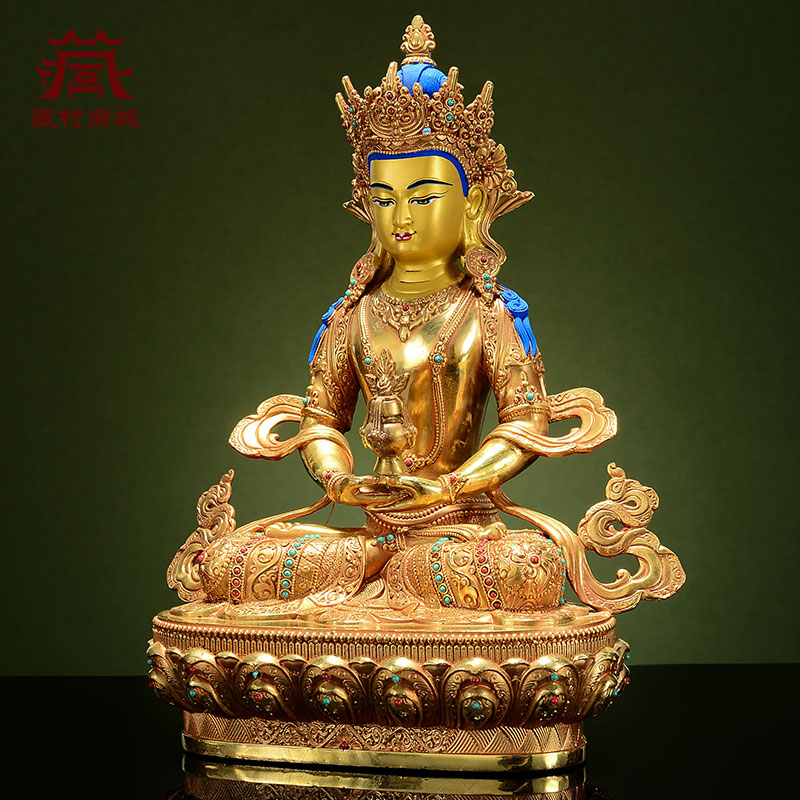 藏村全鎏金《长寿佛》宝石镶嵌精工《常寿佛》桌面铜像摆件