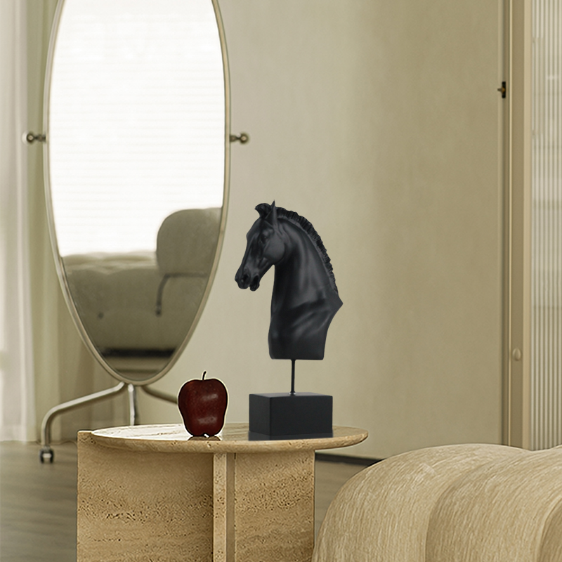 高端黑色马头摆件小众个性设计师款高级感样板间现代简约装饰品
