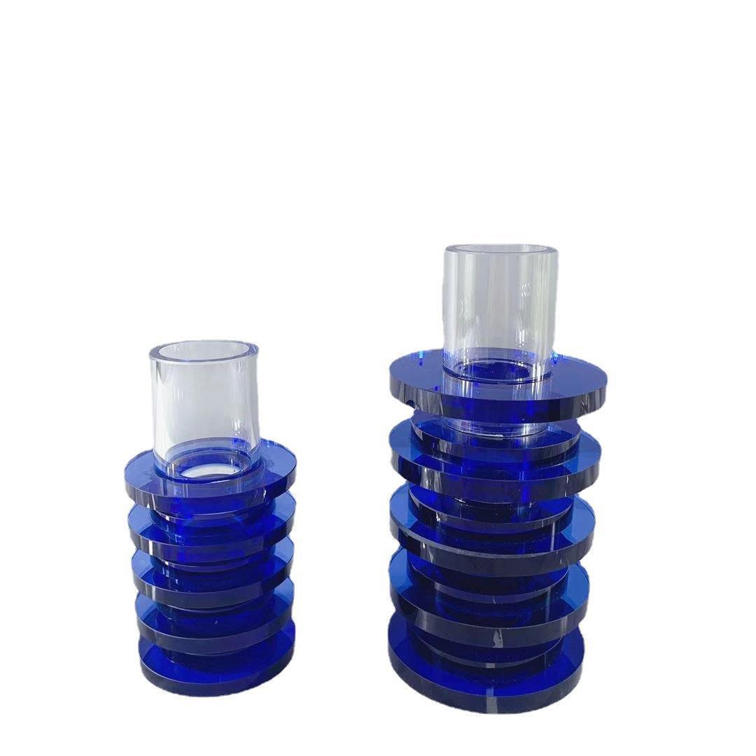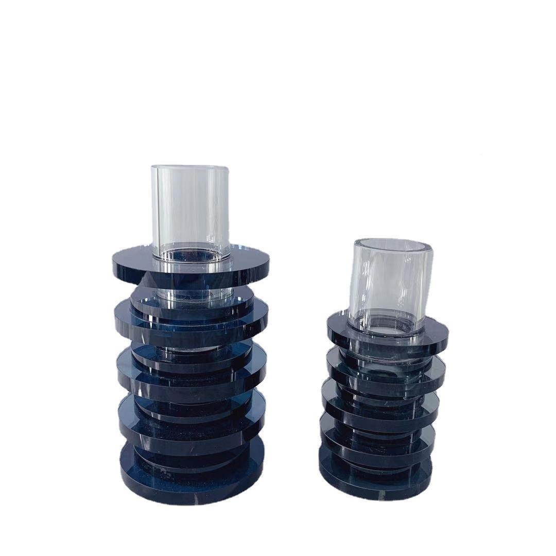 简约现代几装黑何形Z09173-4蓝灰色色水晶摆件售楼处软饰品茶桌面