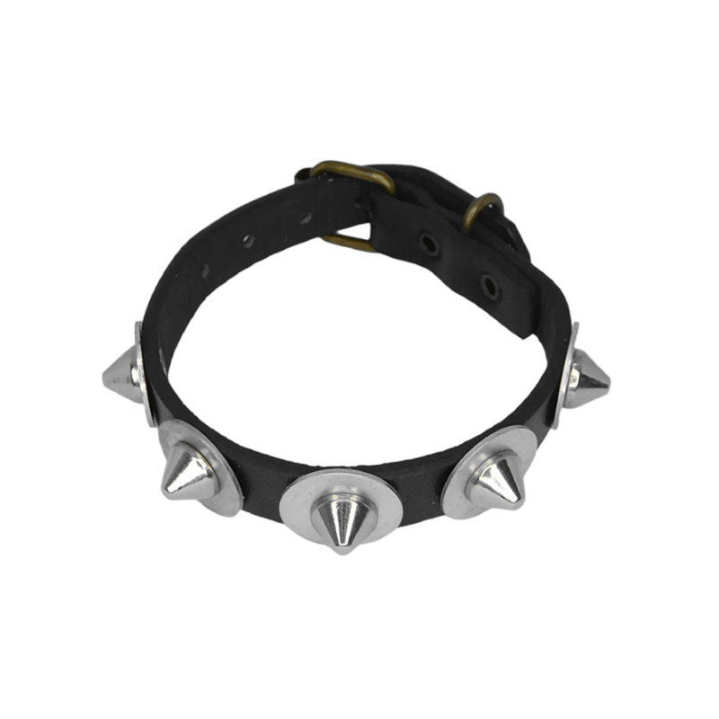 银色奶嘴铆钉圆盘垫片黑色朋克窄皮革手链百搭中性装饰品手镯手环