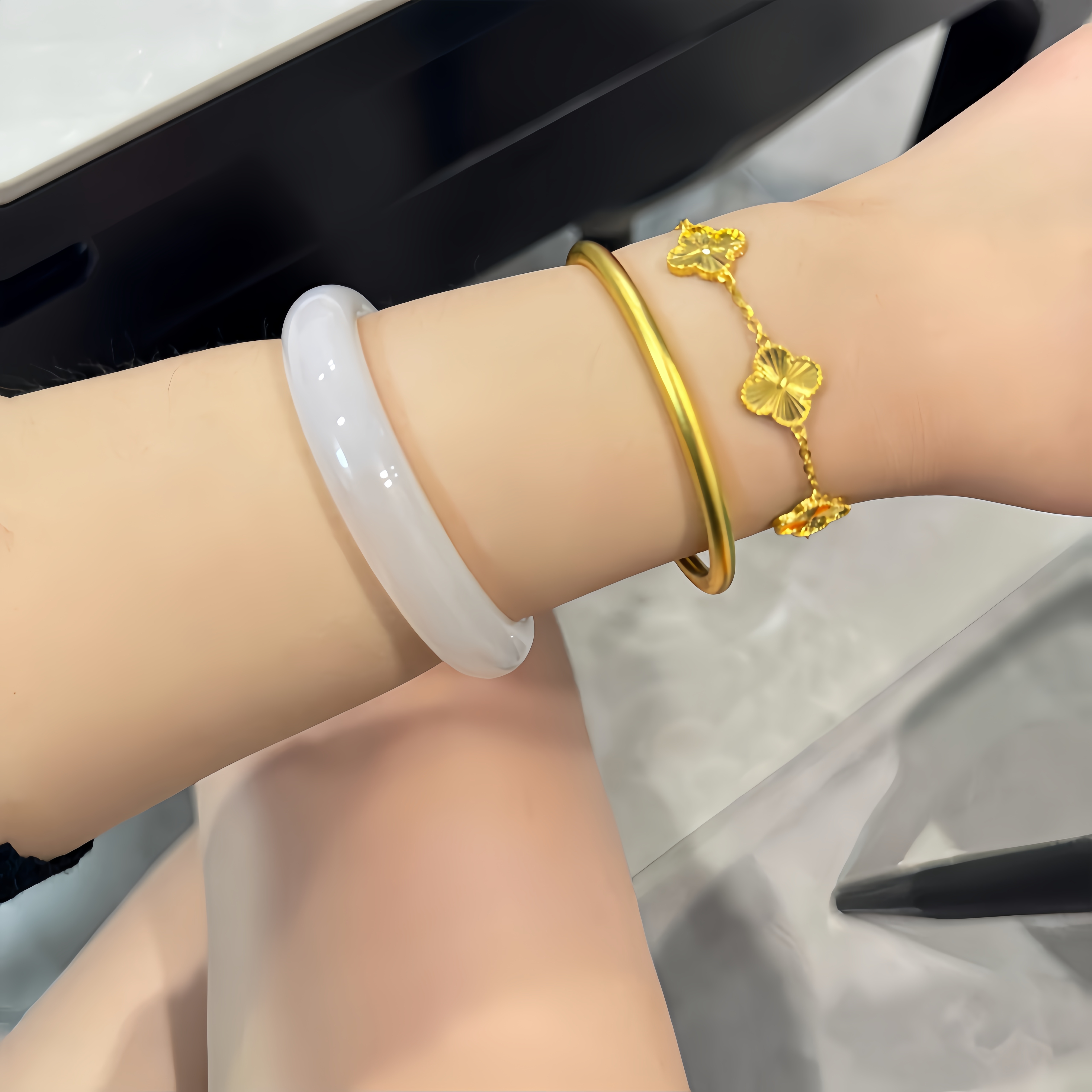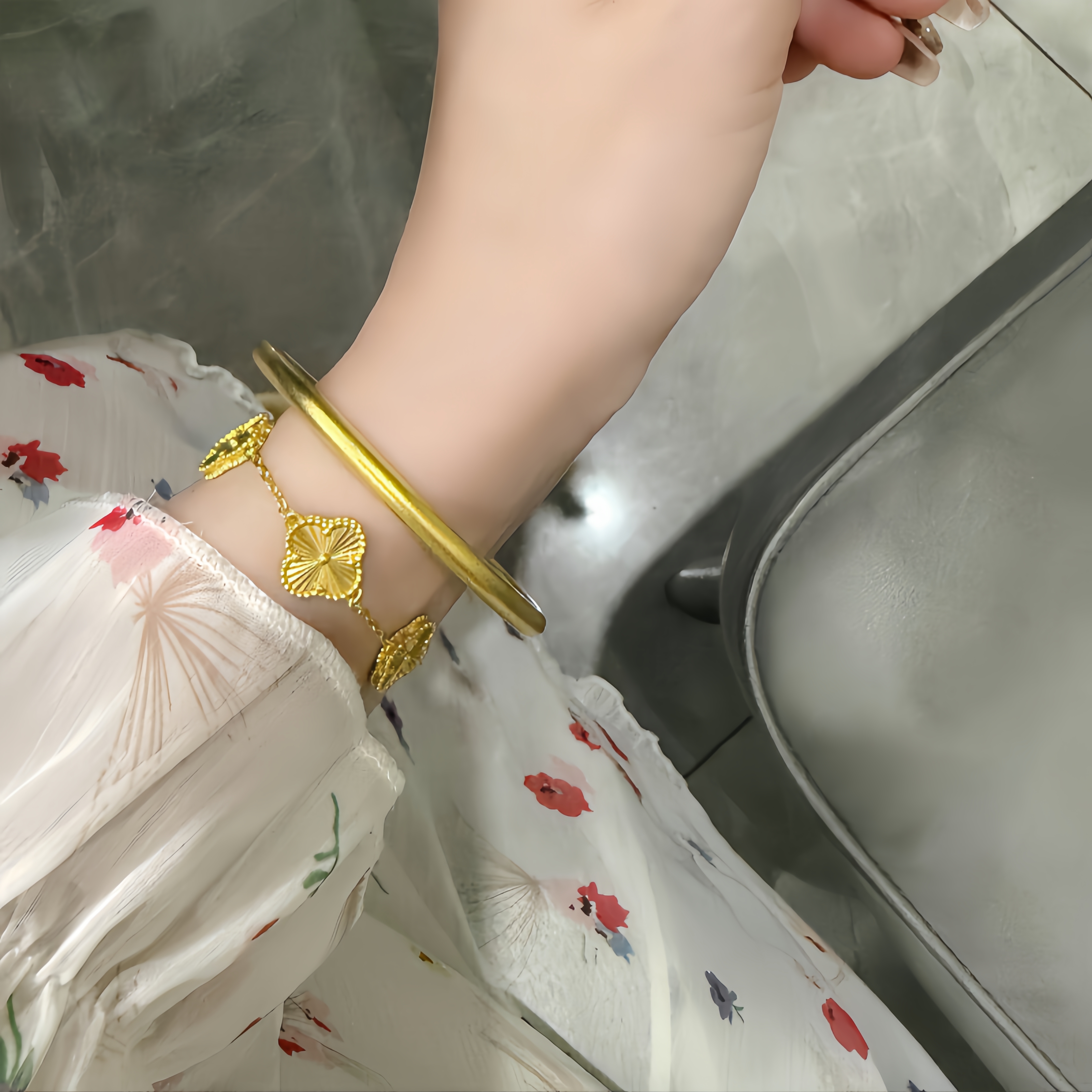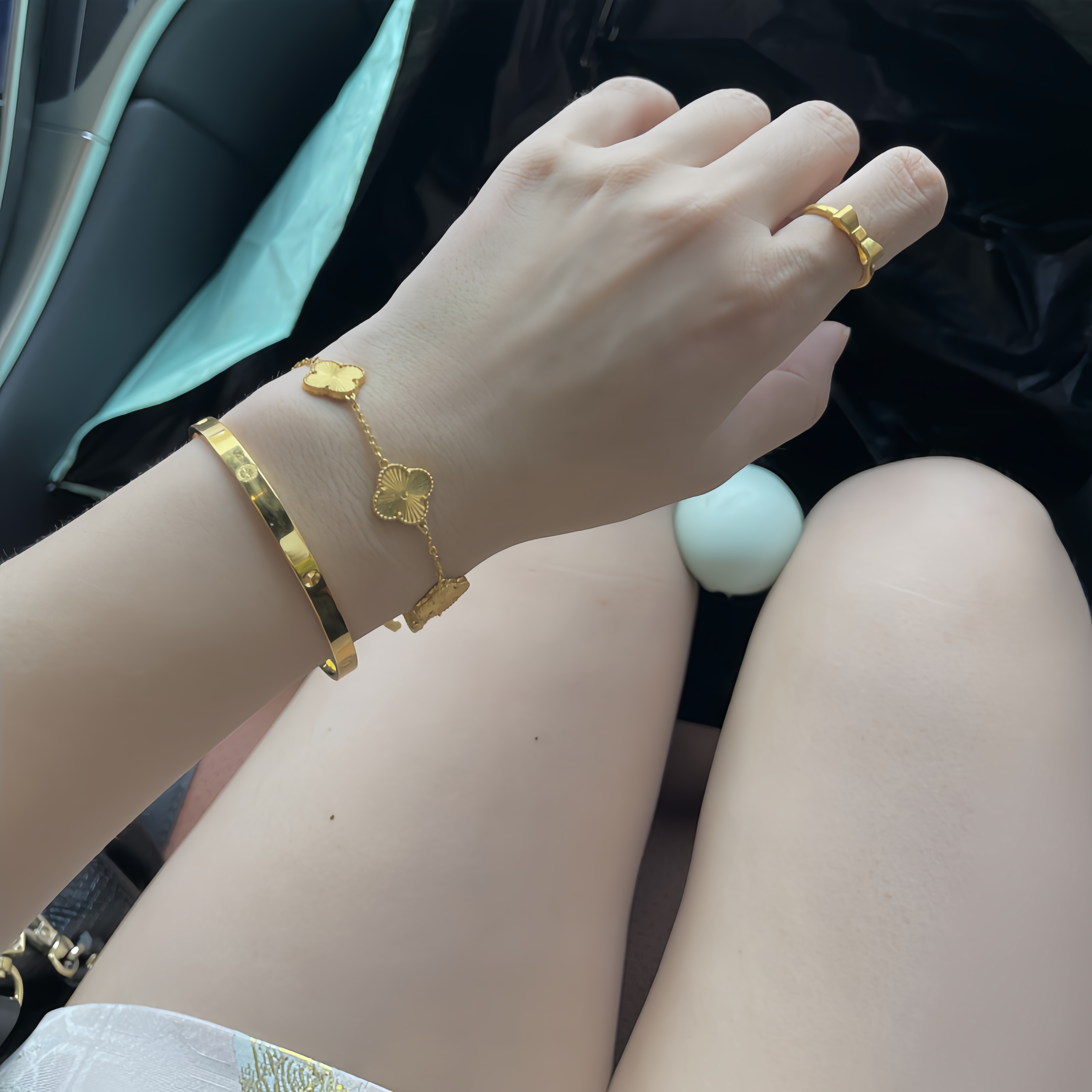 老铺古法黄金包银五花手链女一体式镭射幸运草黄金手串送女友礼物