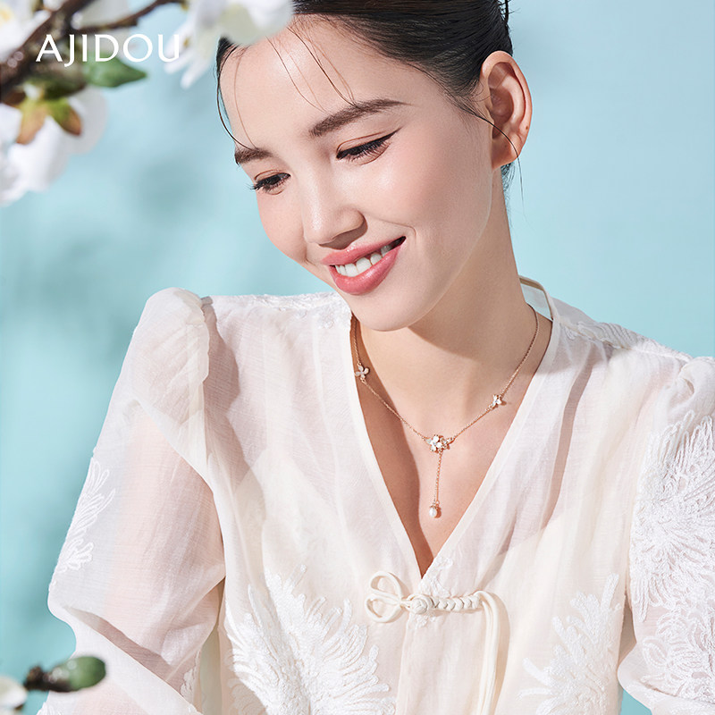 AJIDOU阿吉豆项链女款桂花珍珠吊坠小众高级感专柜同款锁骨链颈链