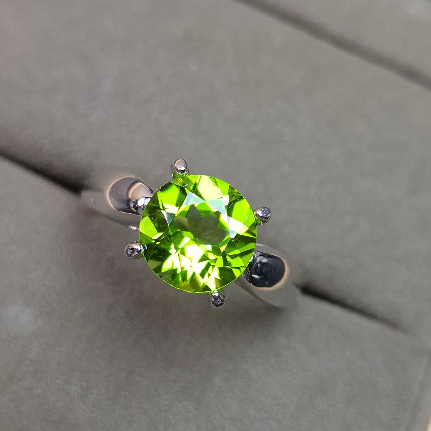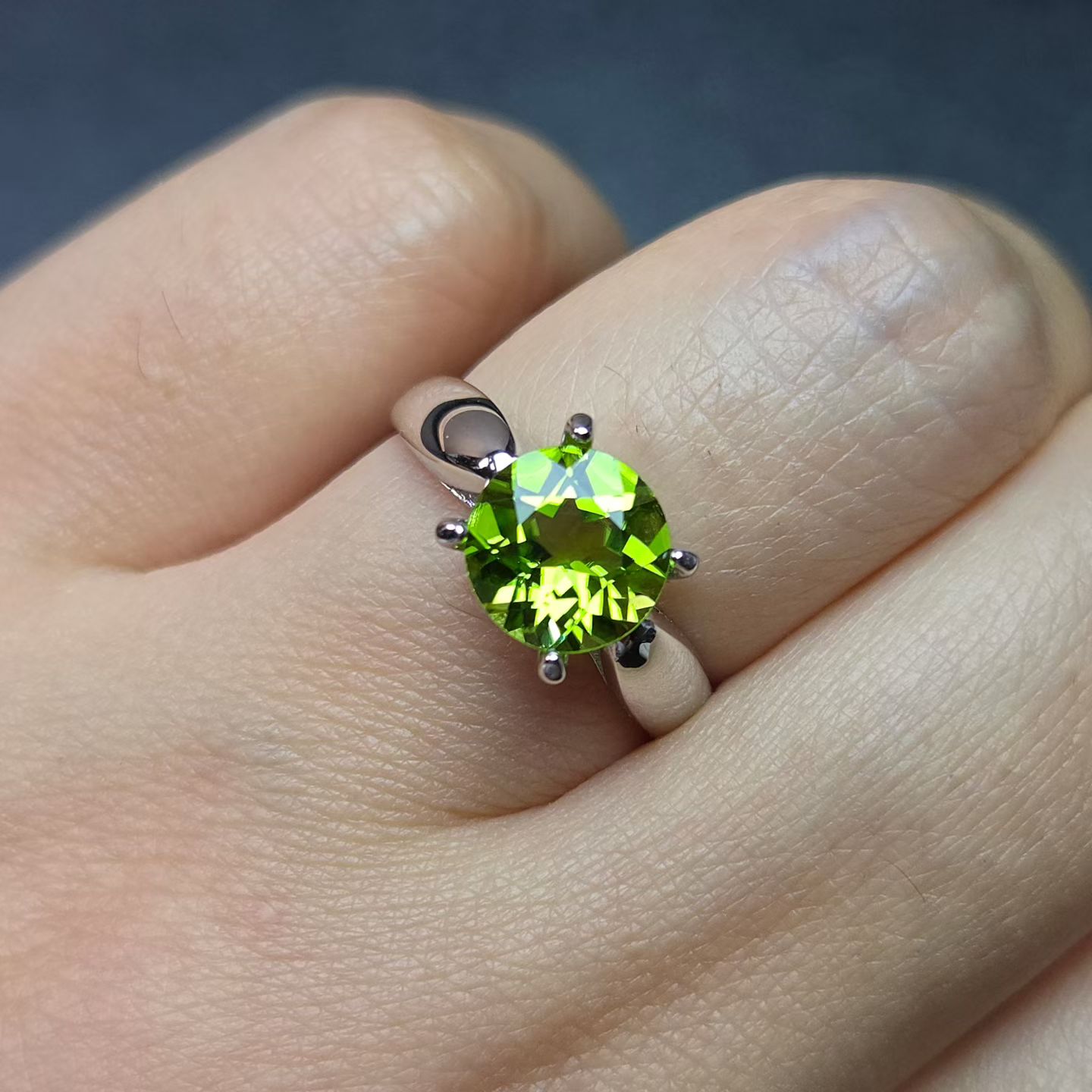 天然橄榄石圆形戒指重量2.38克拉直径8mm全净体钻款六爪皇冠款