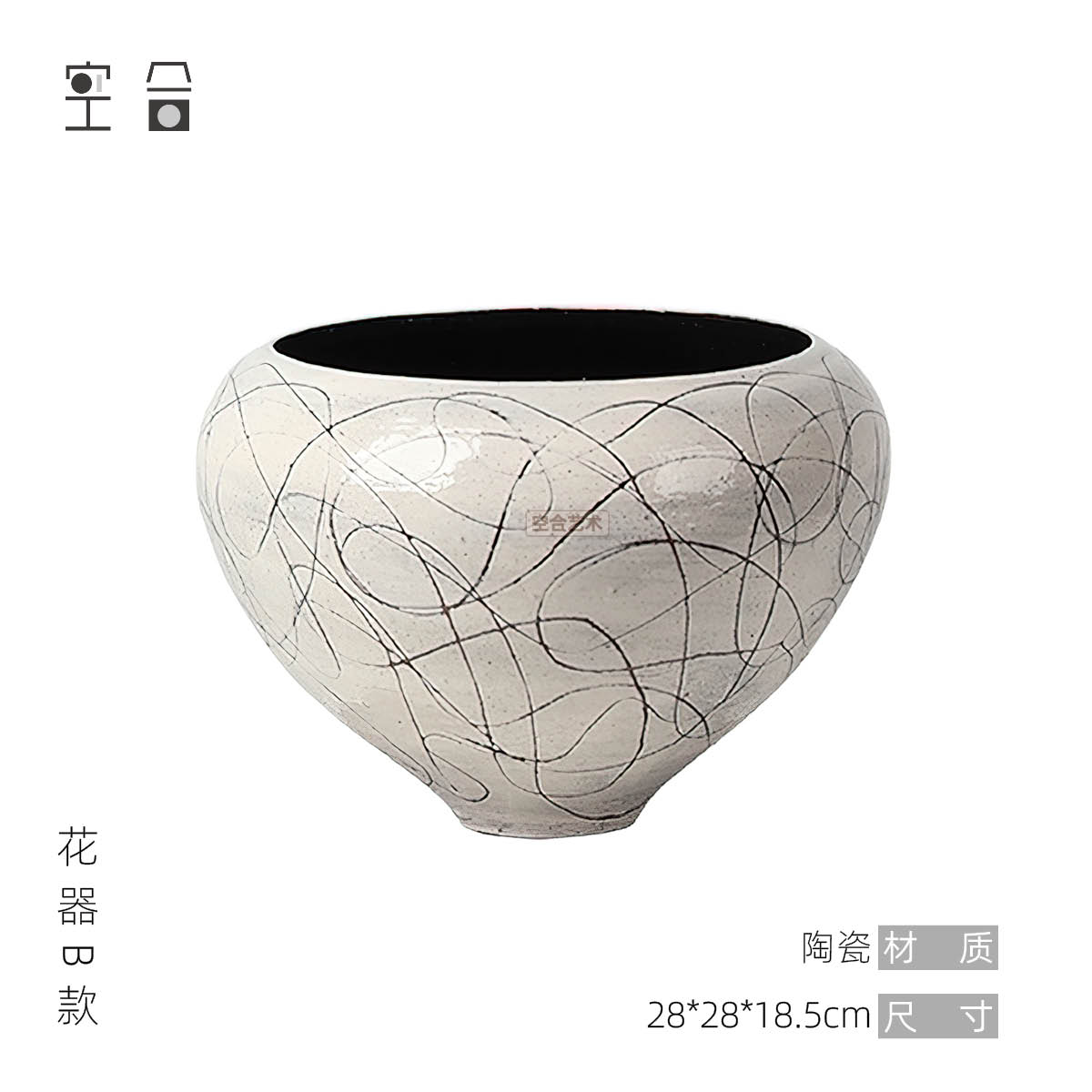 空合 新中式侘寂风设计感手工陶瓷花瓶 售楼处玄关花艺雕塑摆件