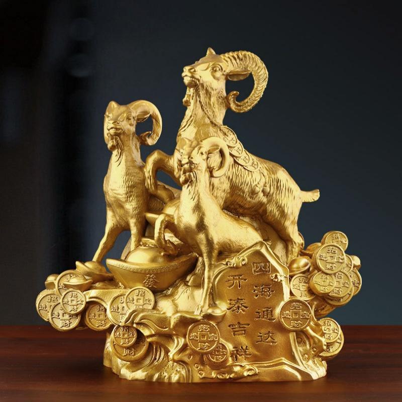 纯铜三羊开泰摆件家居桌面装饰元宝金钱羊领头羊生肖羊三阳开泰