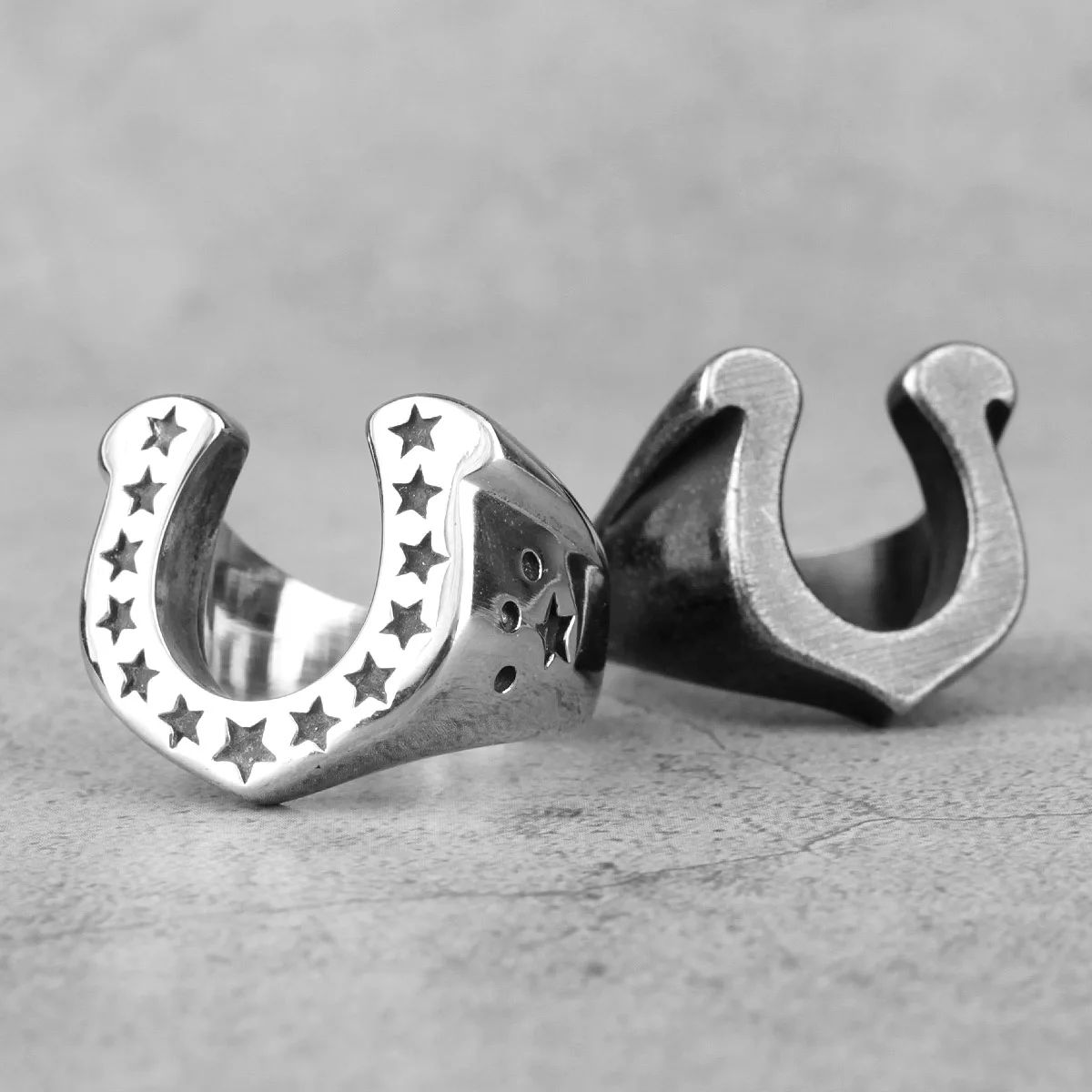 Horseshoe U-shaped Star Black Stainless Steel Mens Rings Pun