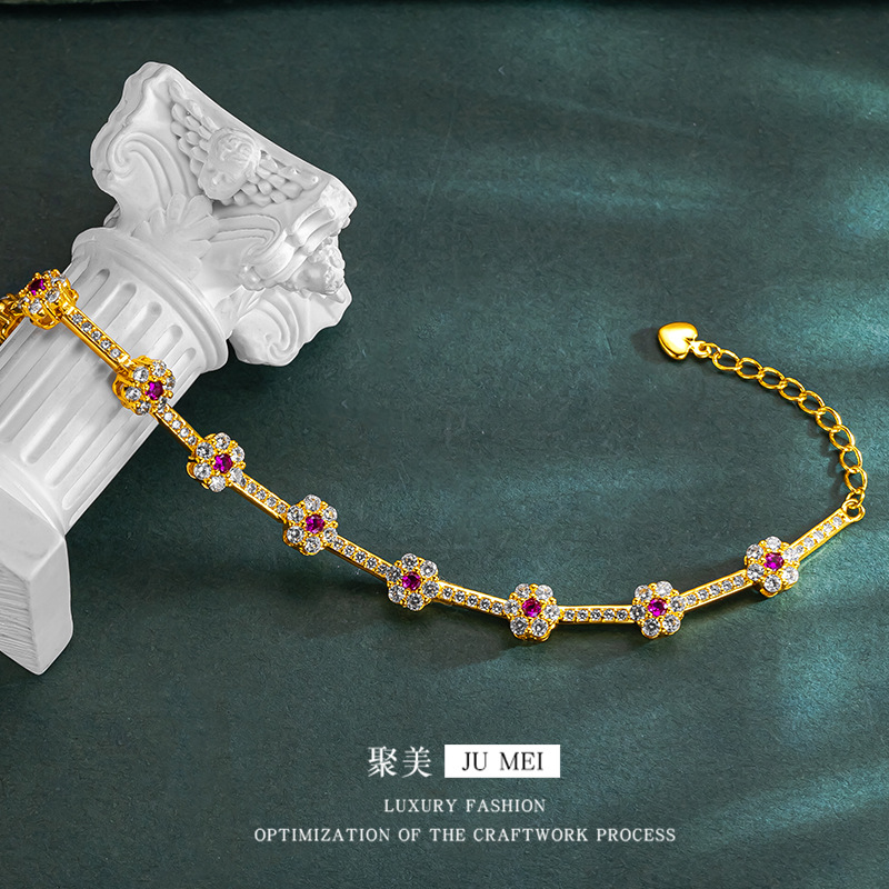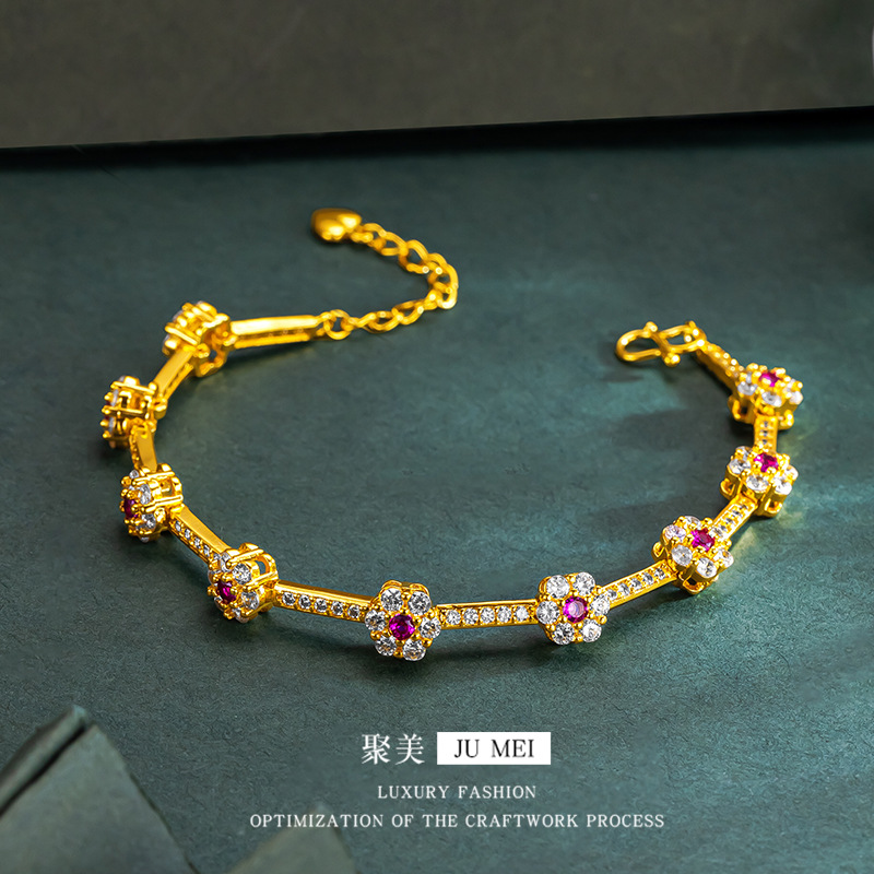 黄金色满钻梅花手链越南沙金满钻宝石手链高级感手环送女友饰品