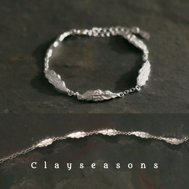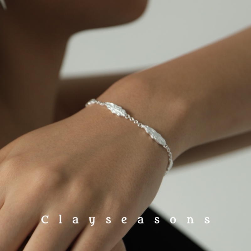 Clayseasons银叶菊手链 纯银原创设计感叶子手工肌理精致度假风