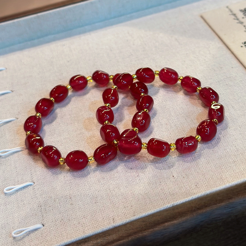 蜜蜂妈手作 不规则天然红色玛瑙手串女小众轻奢高级感转运手链