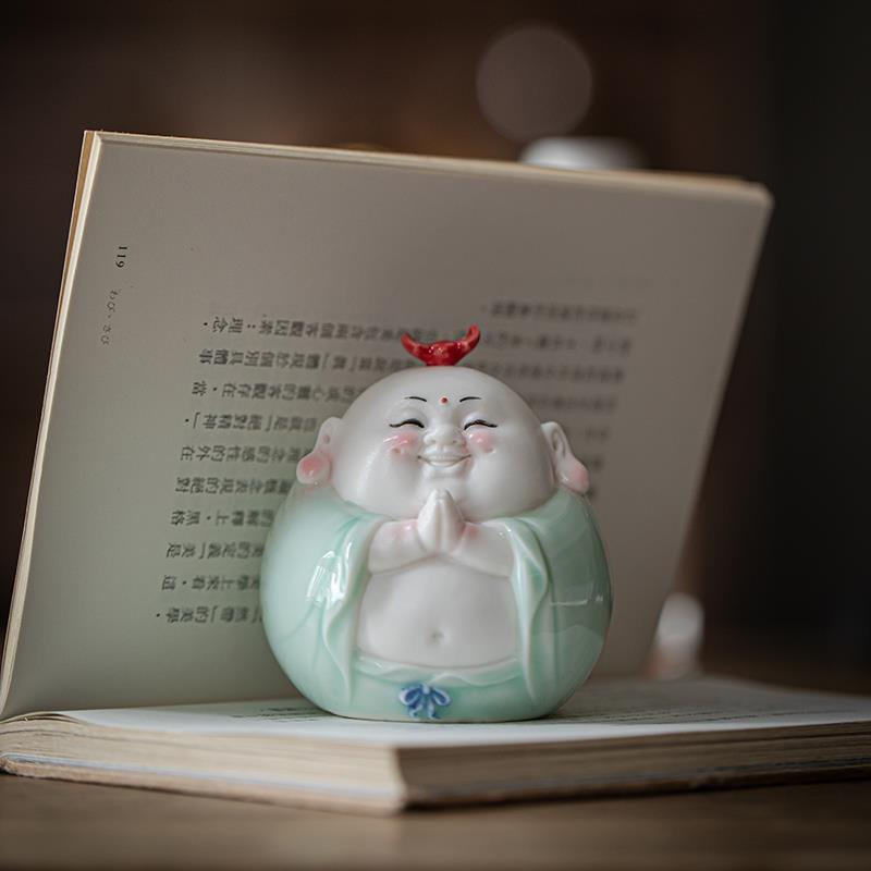 创意陶瓷大肚弥勒佛摆件可爱招财笑佛家居客厅办公桌面装饰工艺品