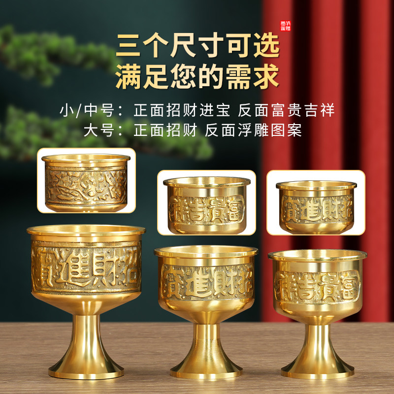 纯黄铜酒杯仿古贡杯关公供水杯拜财神爷家用供奉上供佛前佛具用品
