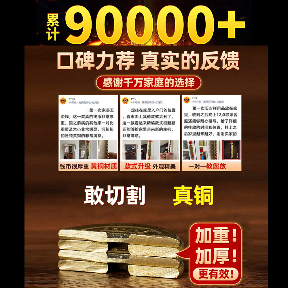 加厚纯黄铜五帝钱挂件门对门真品葫芦压门槛六七九十帝入户门铜钱