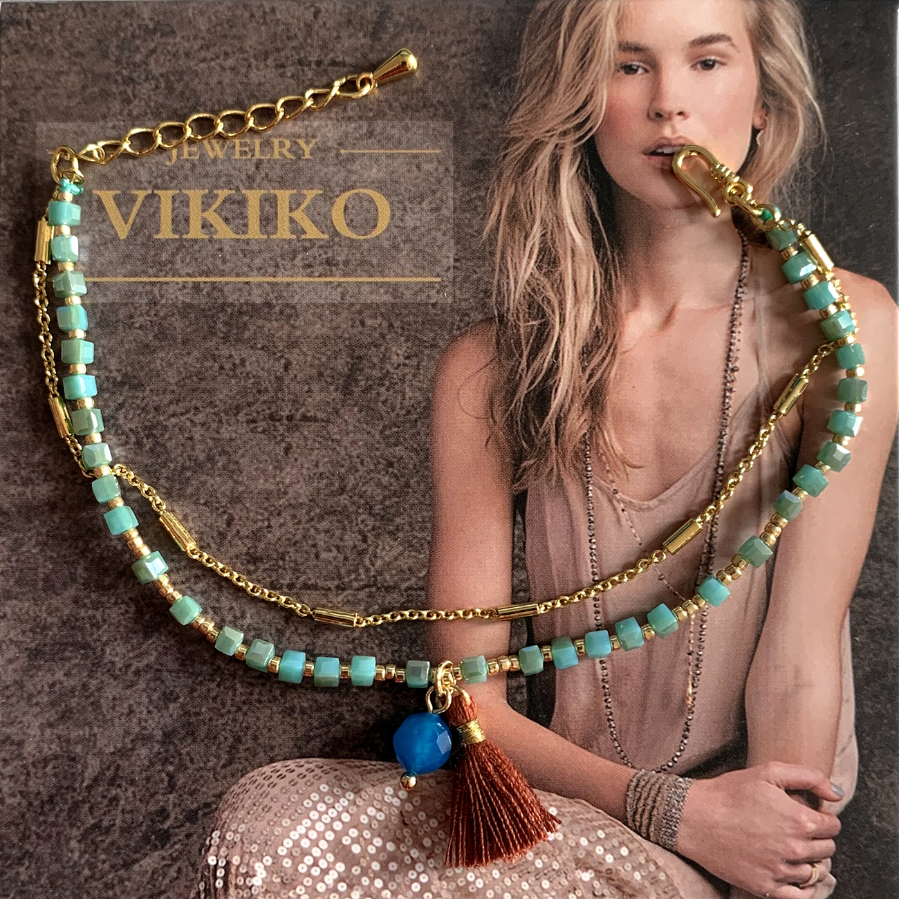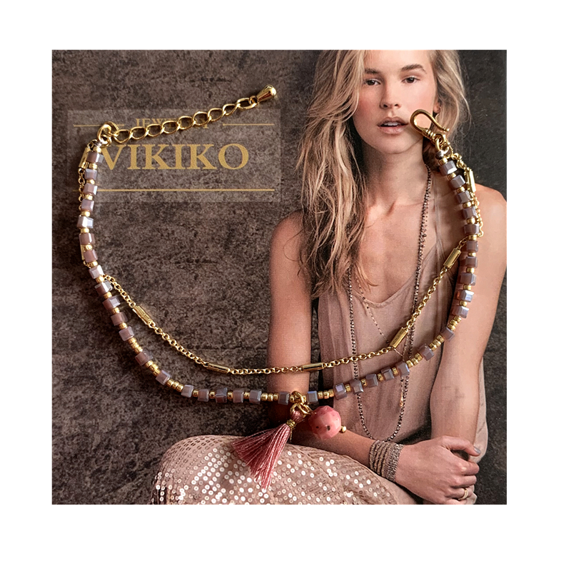 VIKIKO 怀旧款/蛋白紫色水晶手绳ins小众原创双层风格女生手链