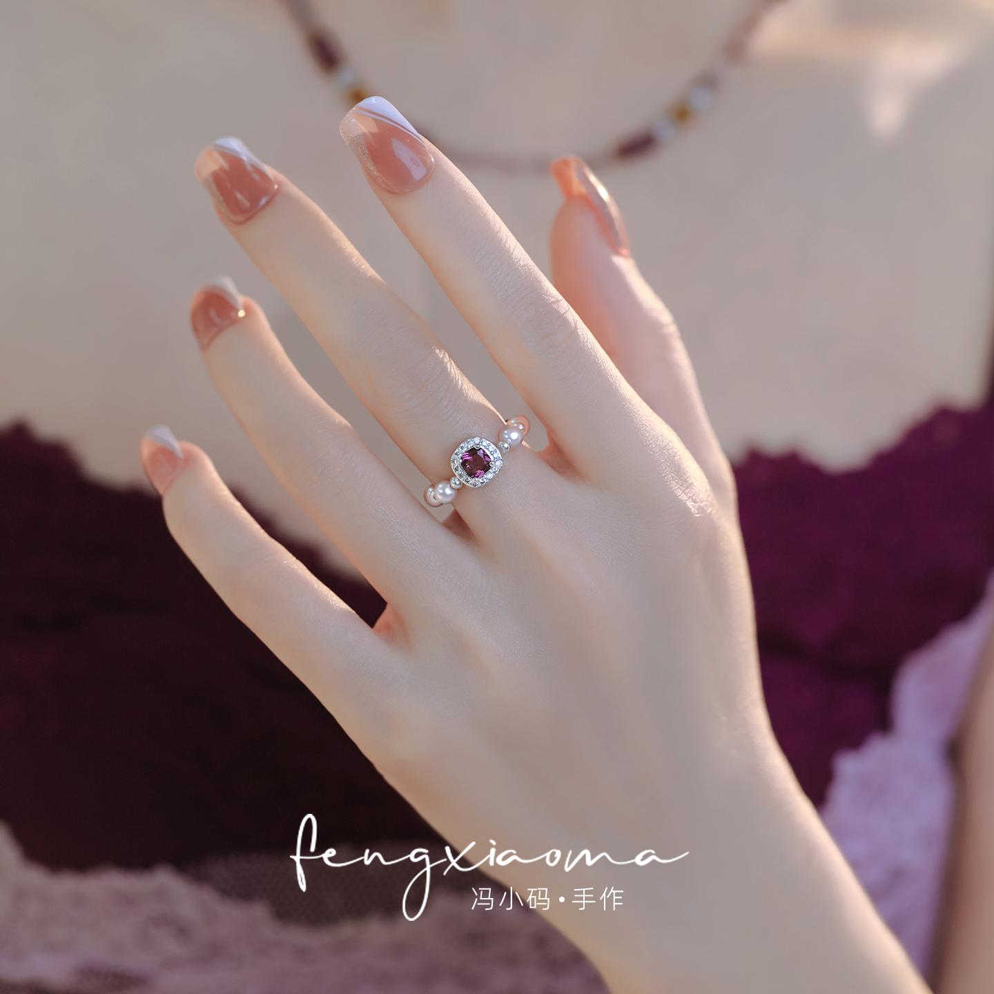 法式优雅紫色微镶锆石珍珠戒指女款轻奢精致高级感时尚个性食指戒