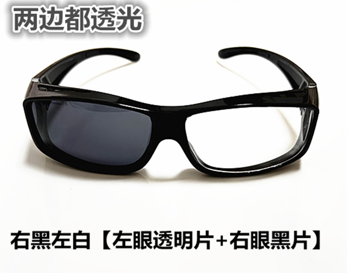 半边黑半边白太阳眼镜一黑一通光平光透明独目单眼部术后防护遮挡