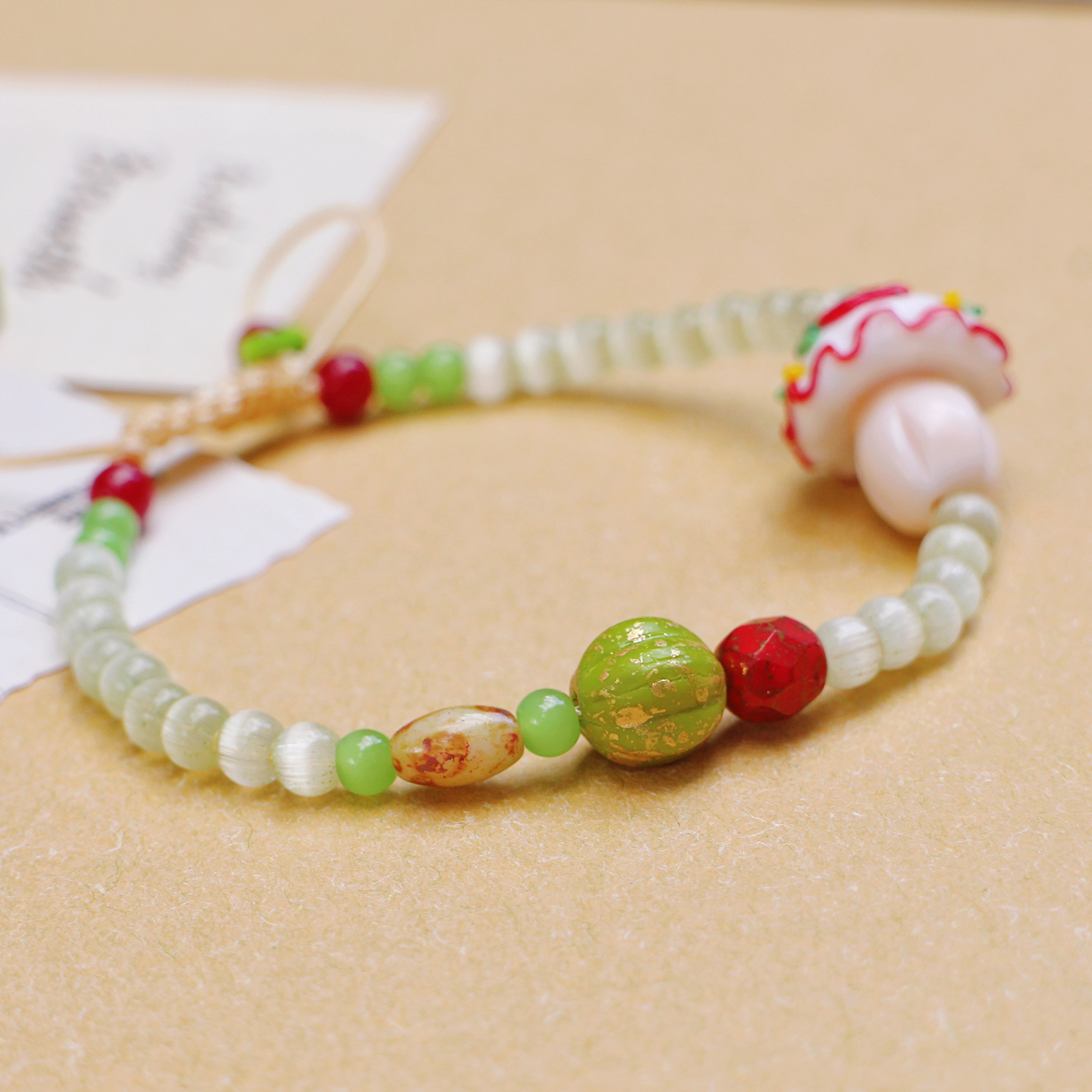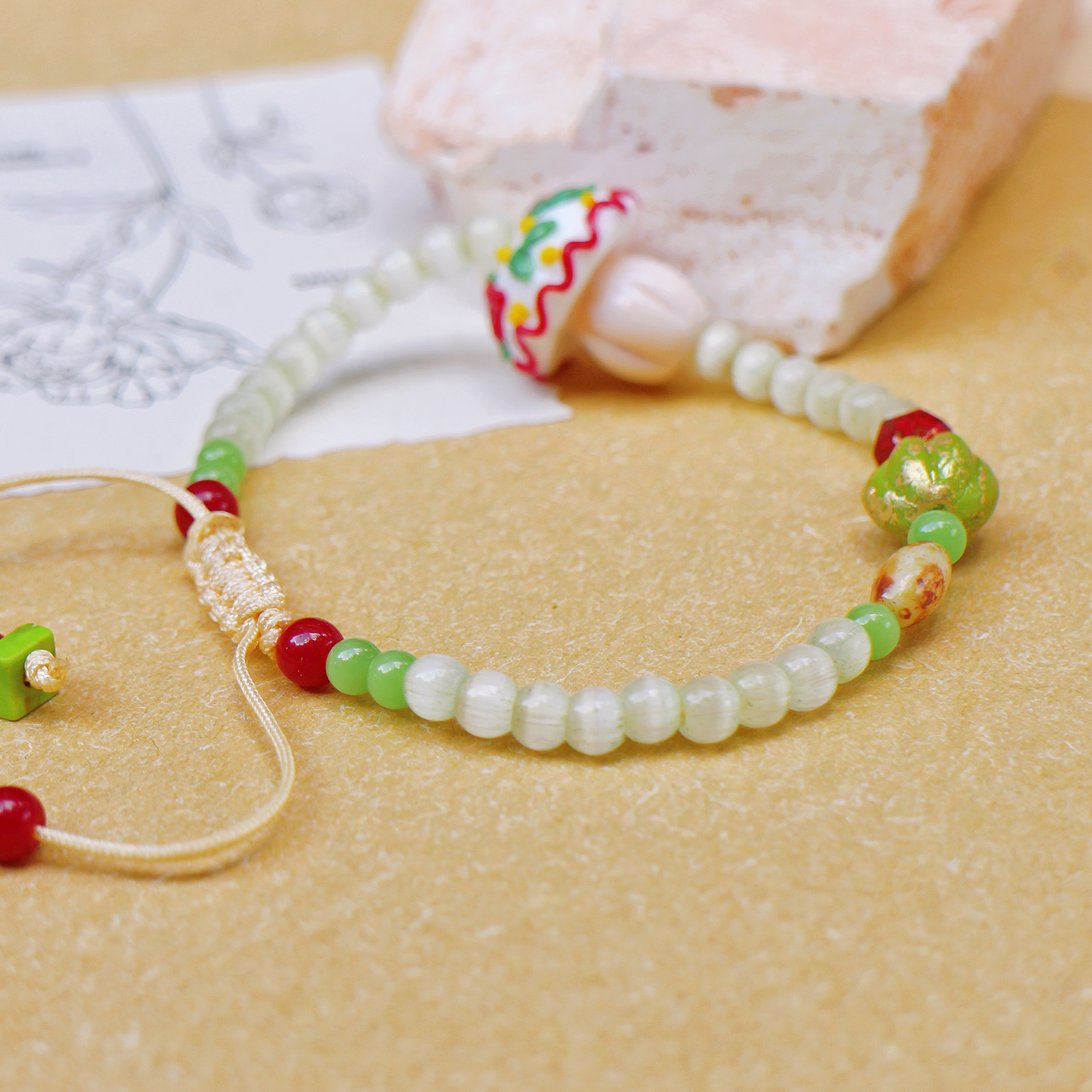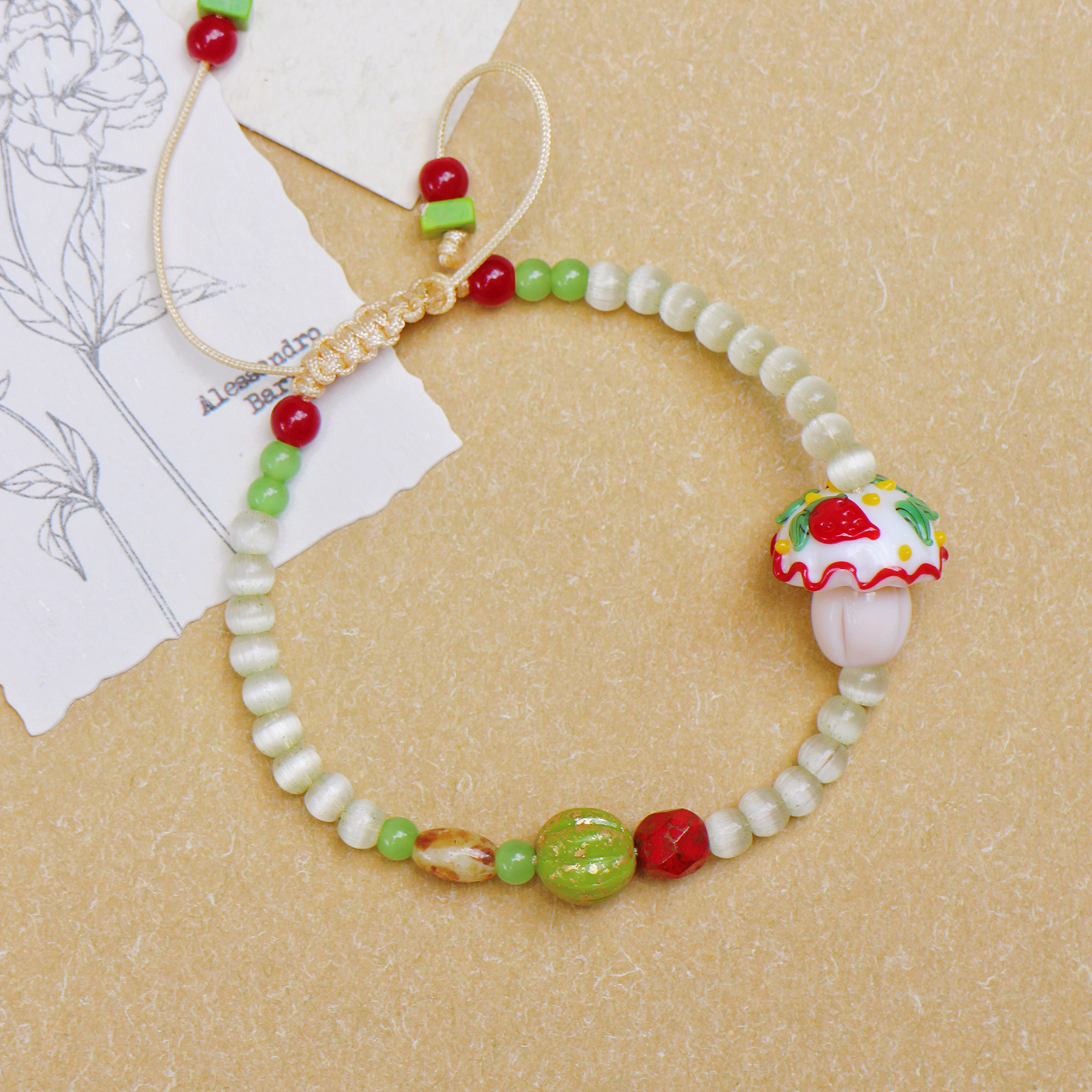 【森林系】自制小众红色琉璃蘑菇手串原创可爱设计可水洗手链礼物