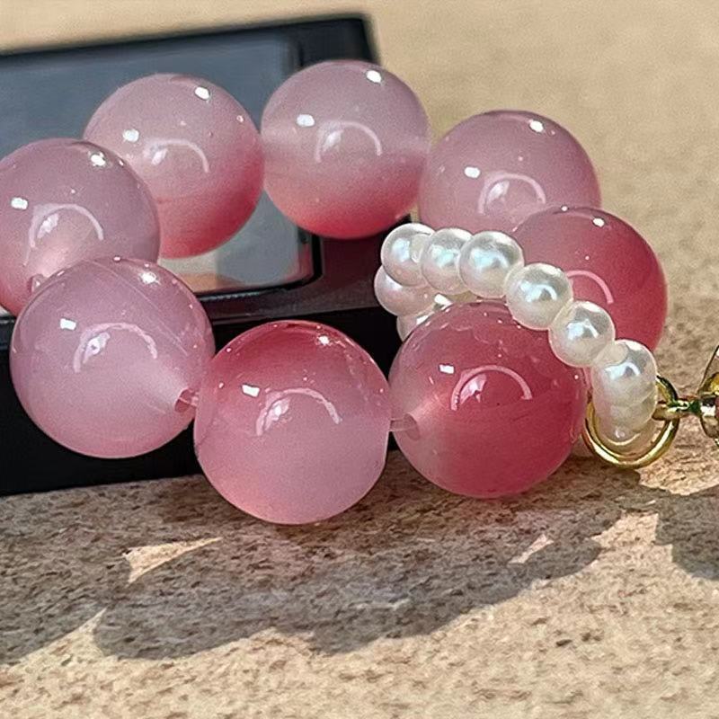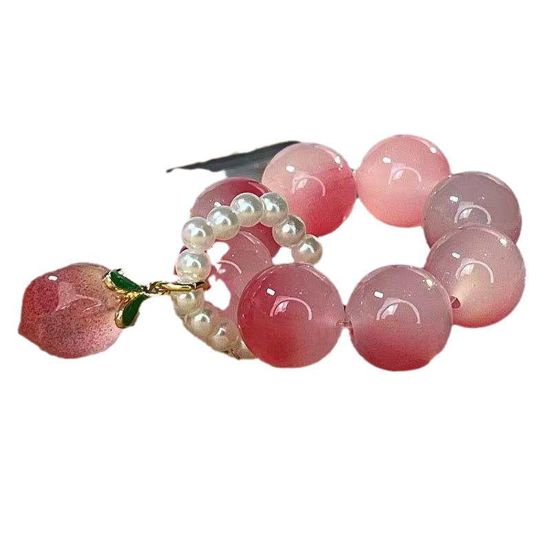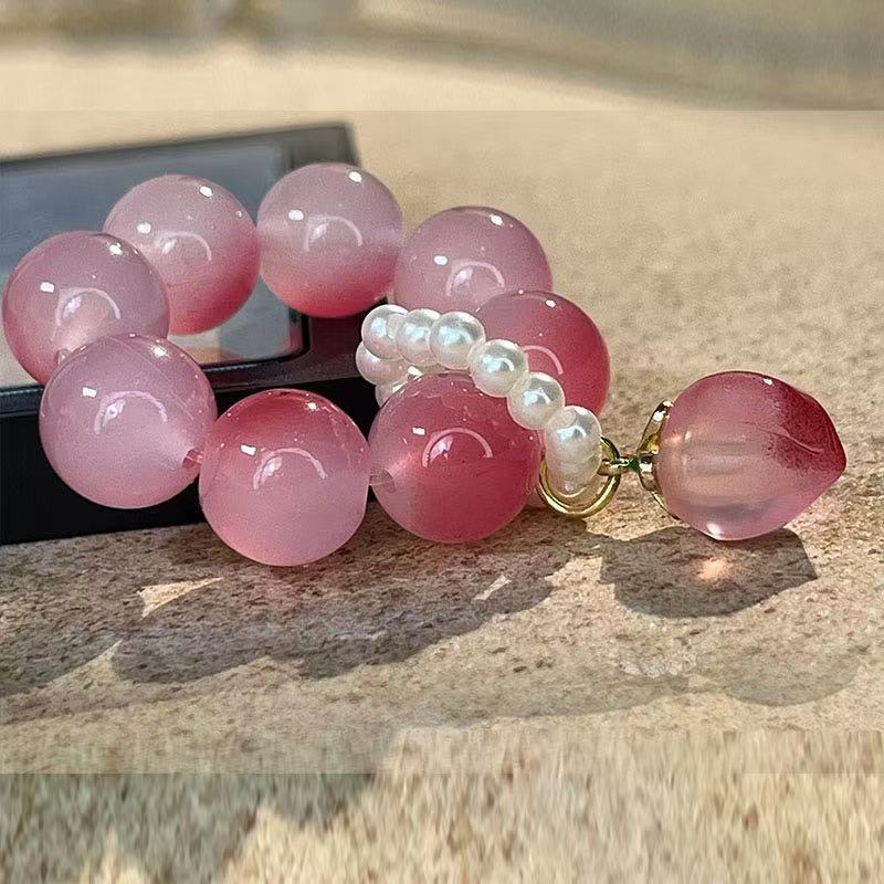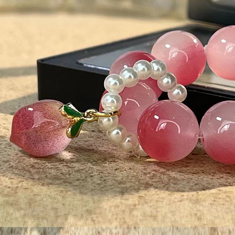 十里桃花粉红色手链小手捻手持绕指柔女桃子吊坠跑环小众迷你设计