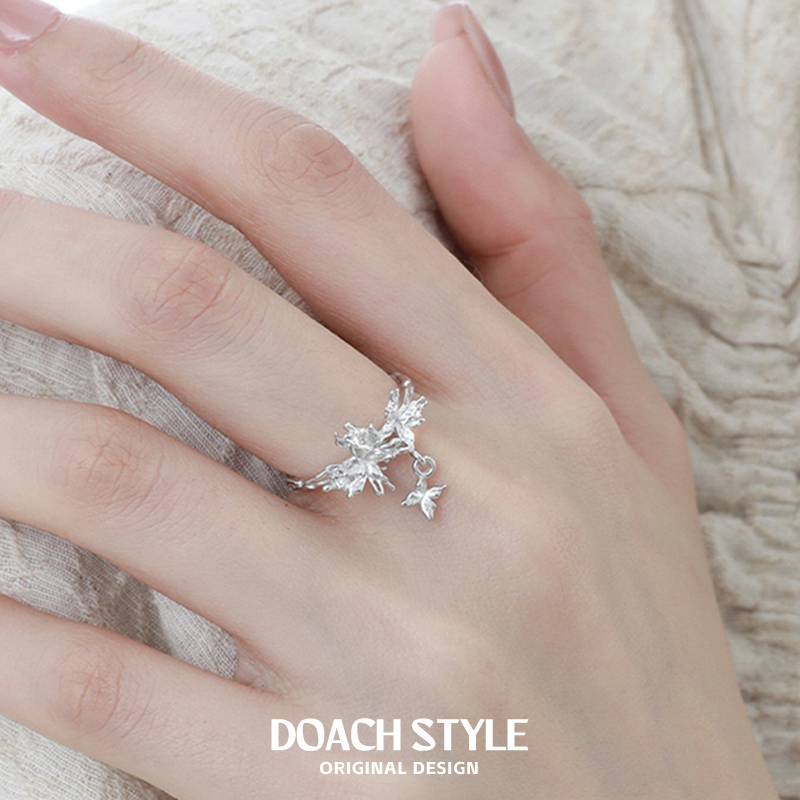 DOACH 蝴蝶纯银戒指小众设计高级感不掉色可调节食指戒冷淡风指环