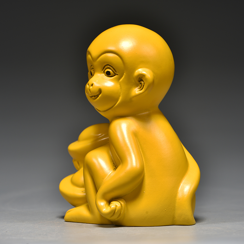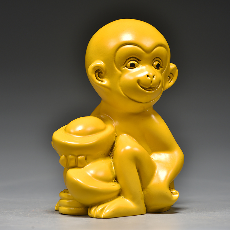 黄色木猴子雕刻摆件十二生肖猴木头属猴吉祥物家居客厅装饰工艺品