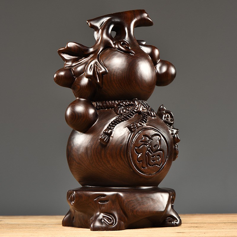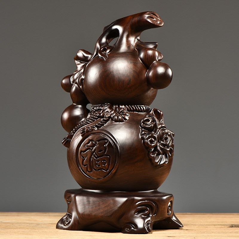 黑檀实木雕刻葫芦摆件客厅家居办公室装饰玄关工艺品摆设开业送礼
