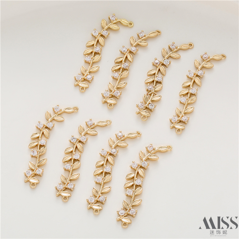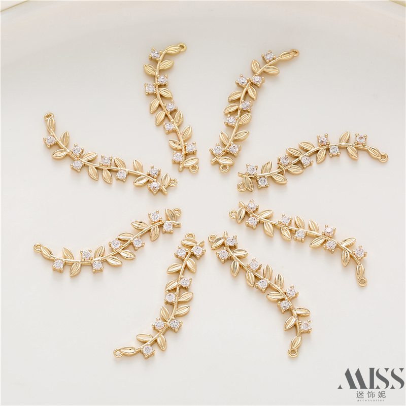 14K包金保色镶锆石树叶双吊橄榄枝吊坠diy手工璎珞发簪首饰品配件