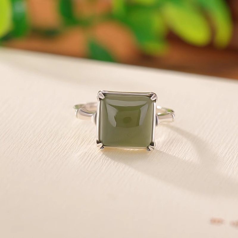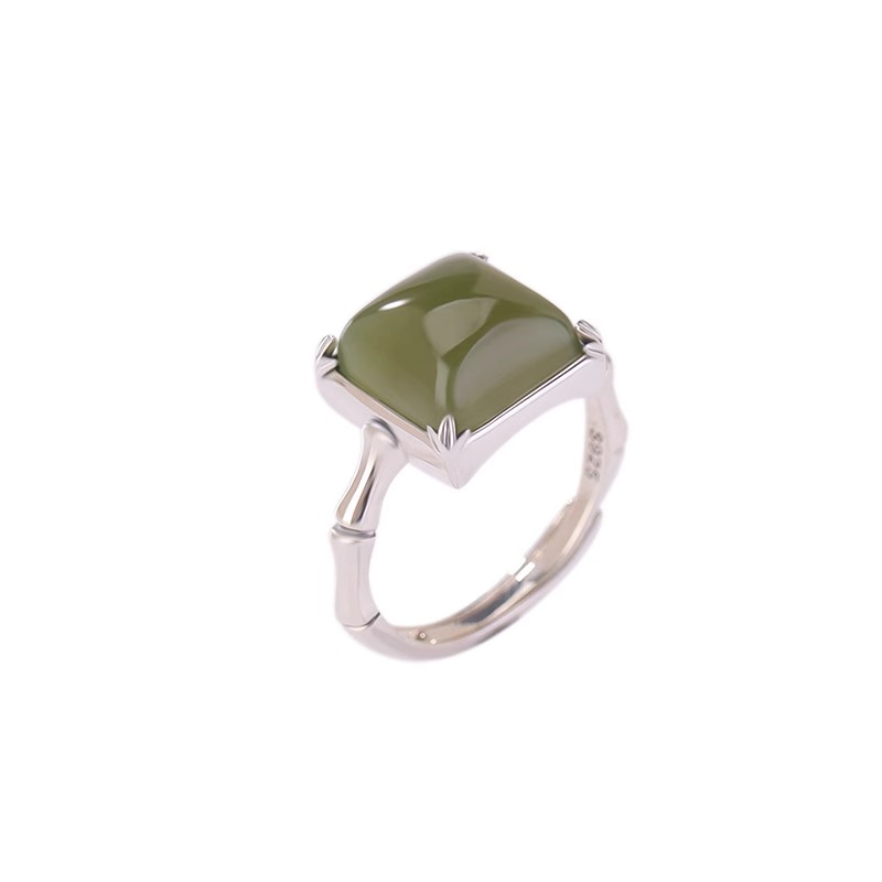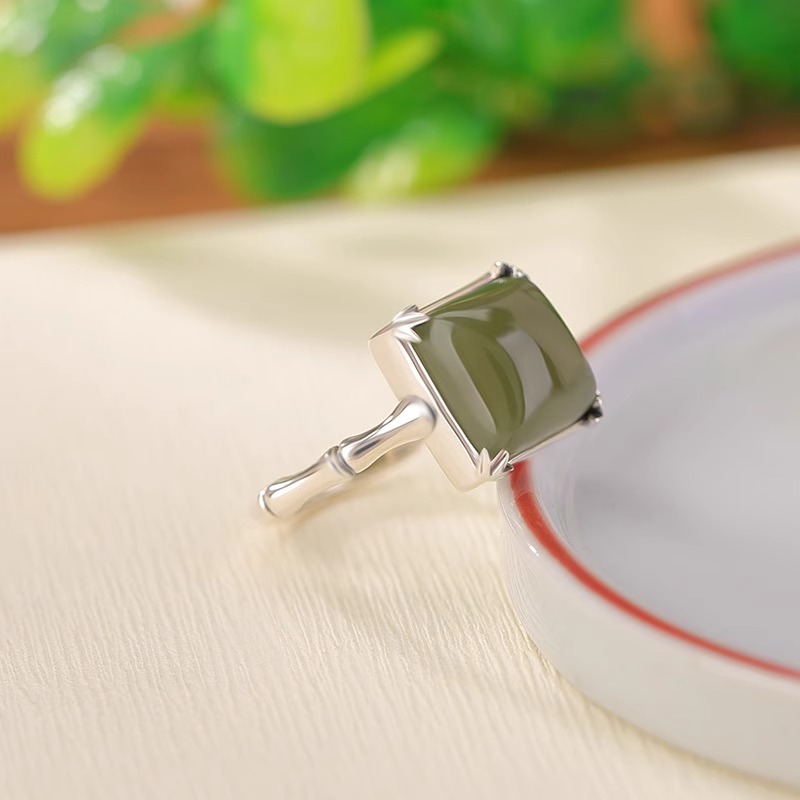 青玉竹节民族风925银戒指女国风新中式方形复古轻奢食指戒
