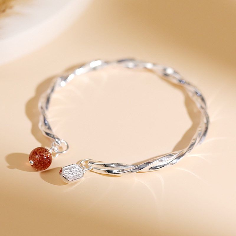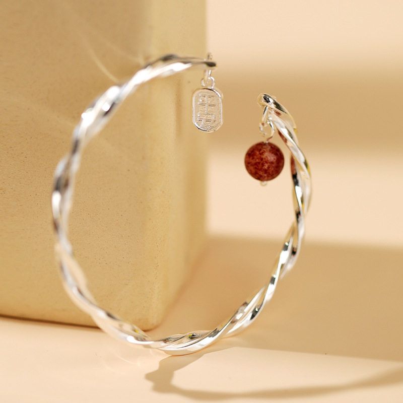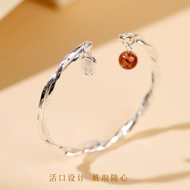 莫比乌斯足银999纯银手镯草莓晶平安喜乐银镯子小众年轻款送女友