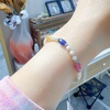 天然彩色多巴胺蓝宝石糖豆珍珠手链女款小众设计高级轻奢气质银色