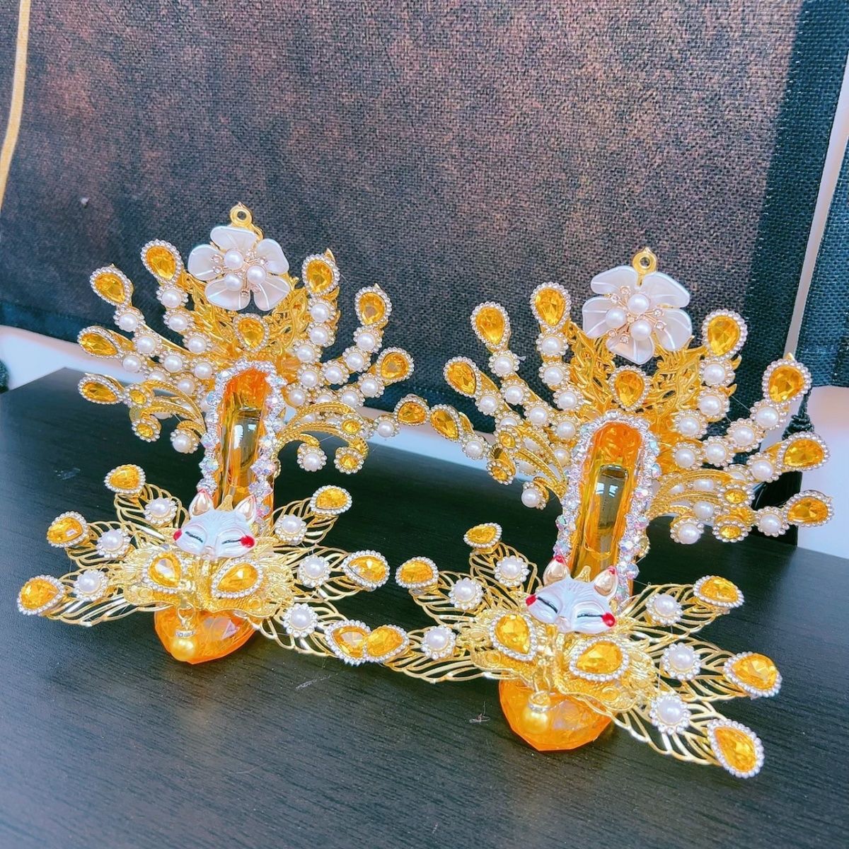 新款纯手工水晶高跟鞋堂口供奉九尾娘娘多色重工精致镶钻珍珠多色