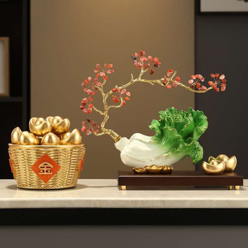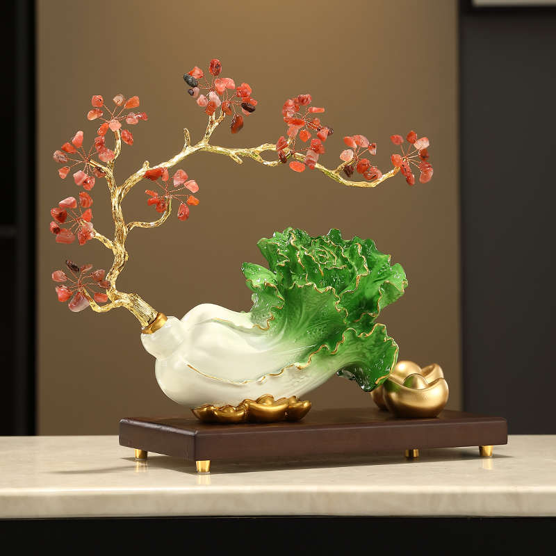 创意白菜百财摆件现代客厅办公室酒柜高端工艺品乔迁装饰开业好礼