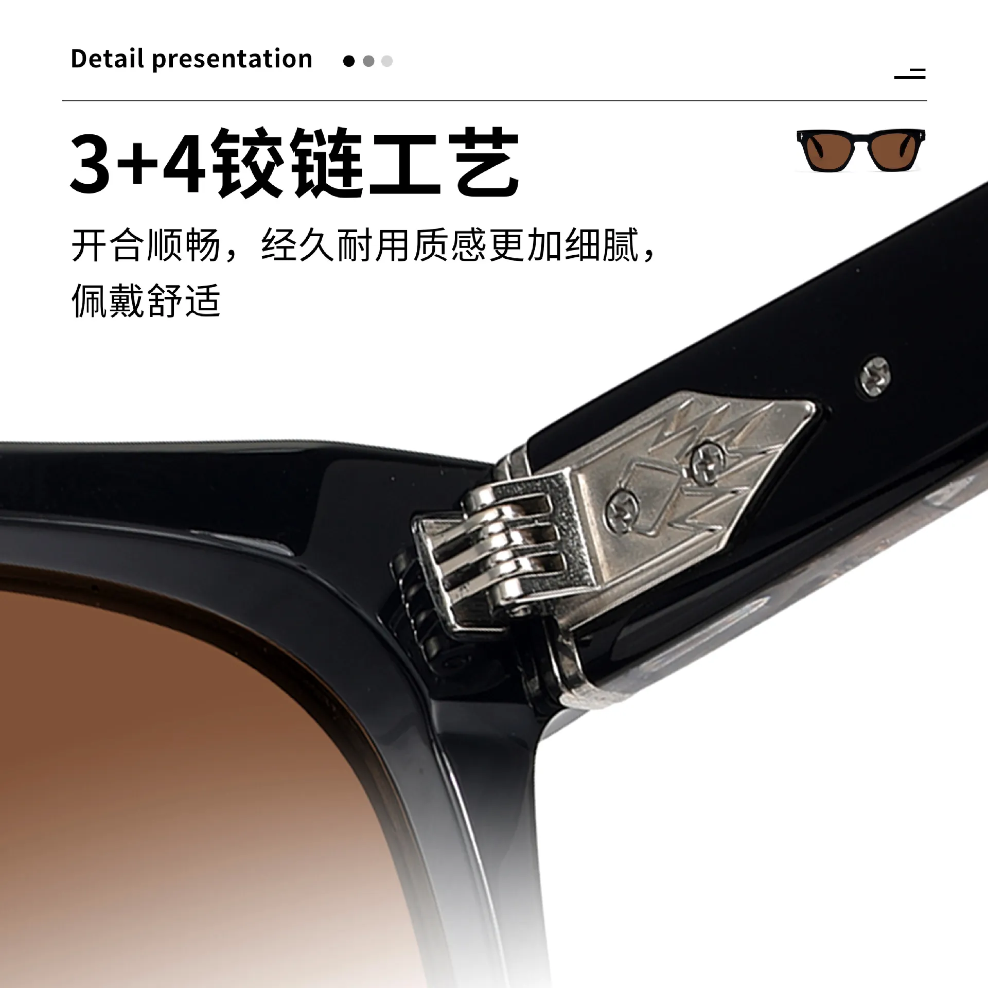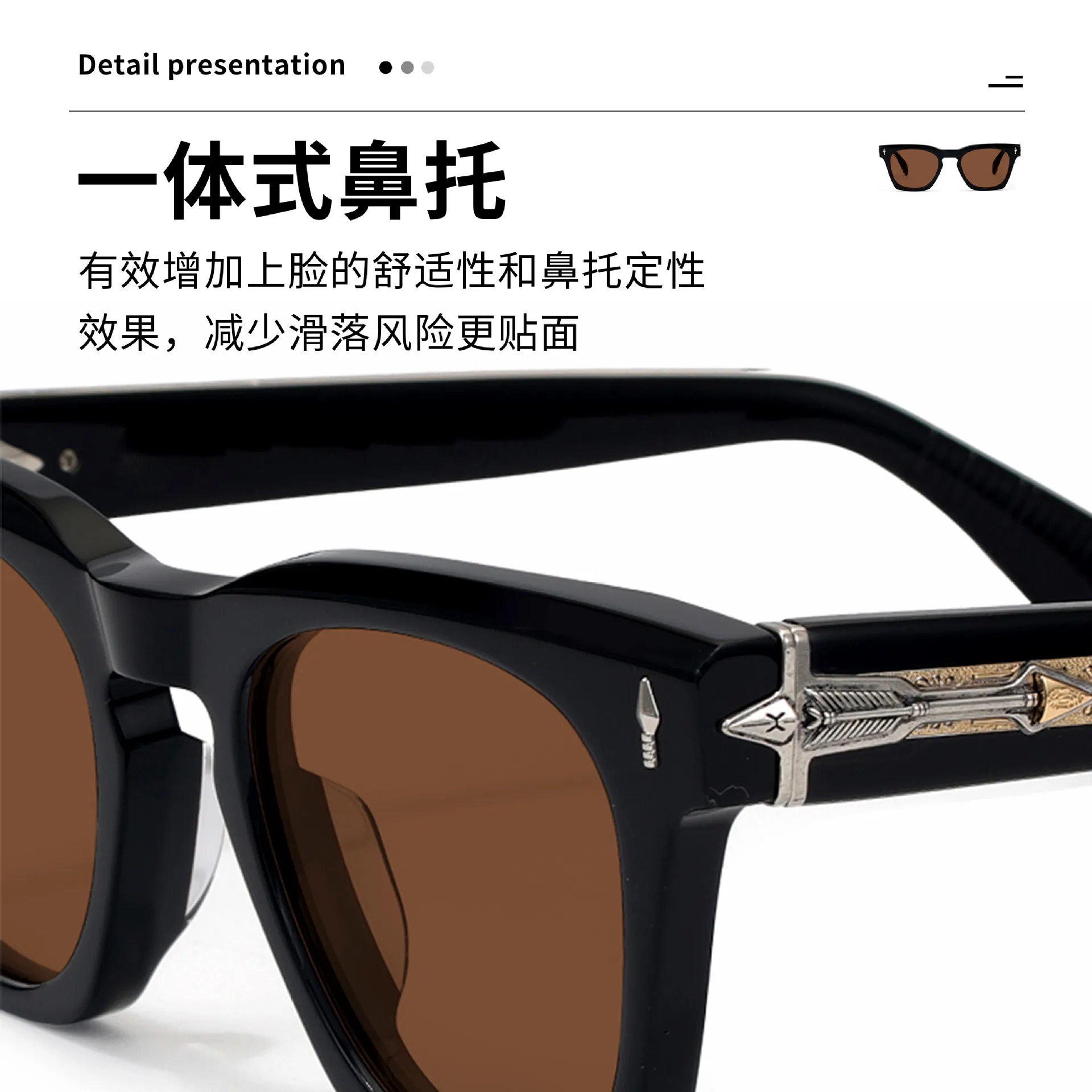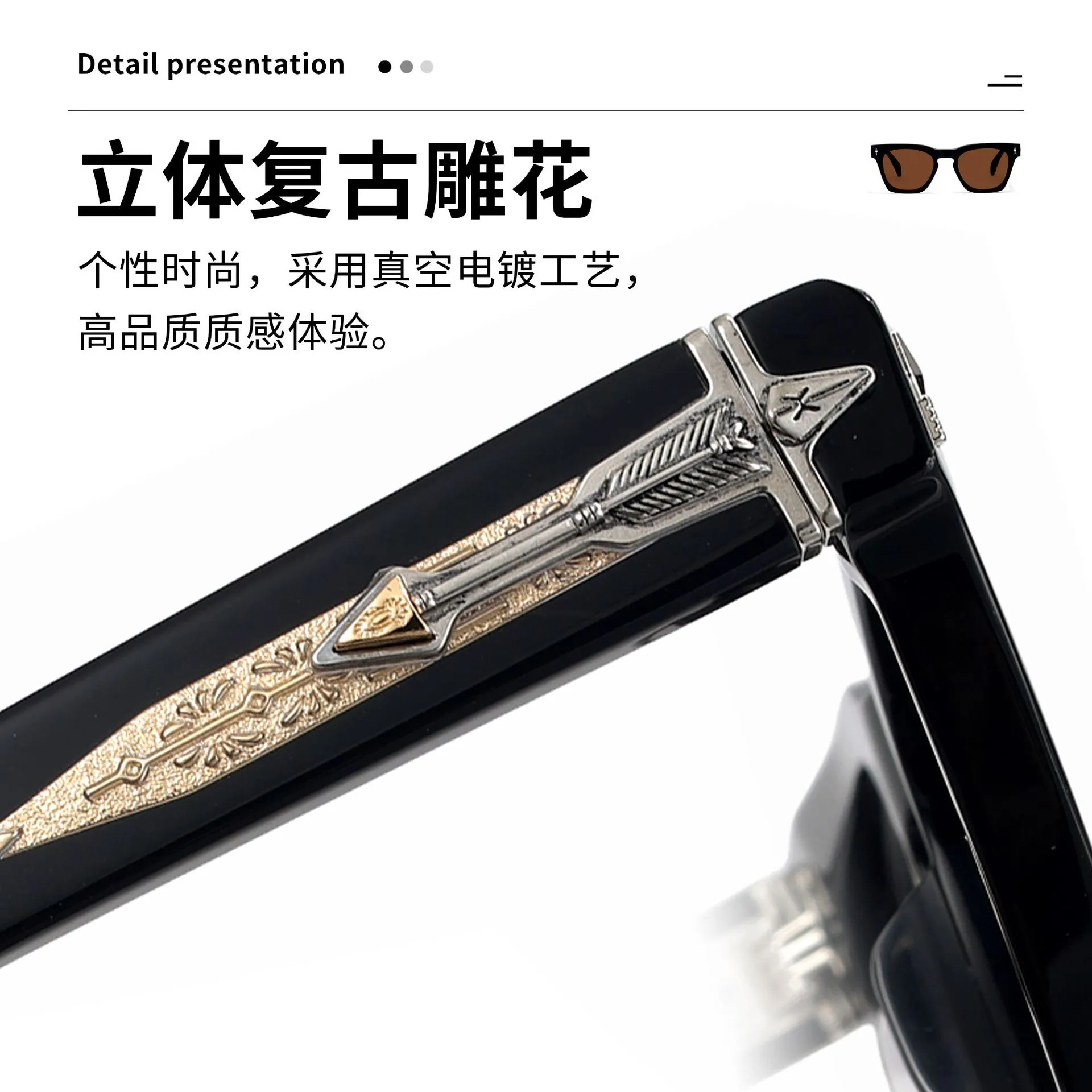 新款欧美时尚潮流厚框太阳镜复古高级感仿板材丙酸插针防晒墨镜男