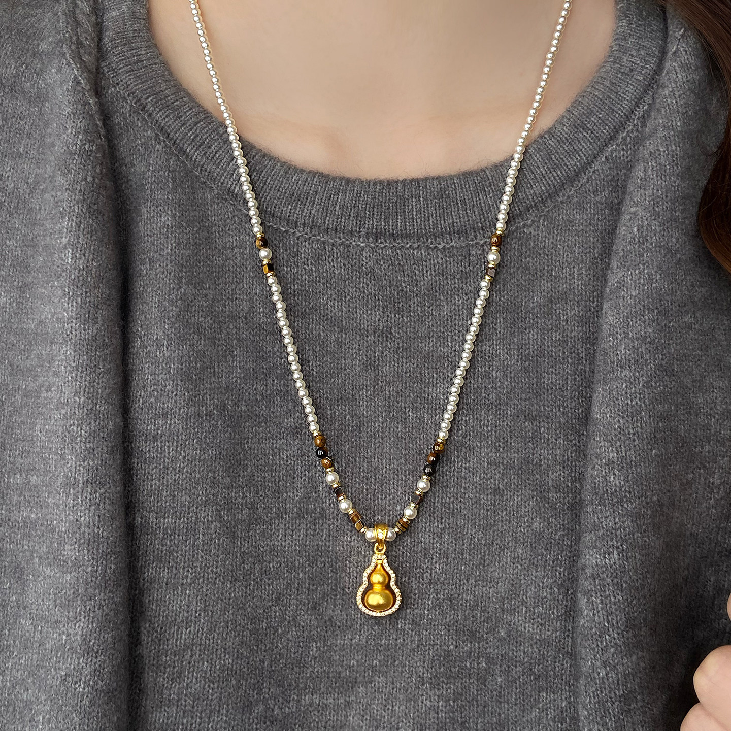 葫芦秋冬长款珍珠毛衣链女款2025新款毛衣项链高级感轻奢小众配饰