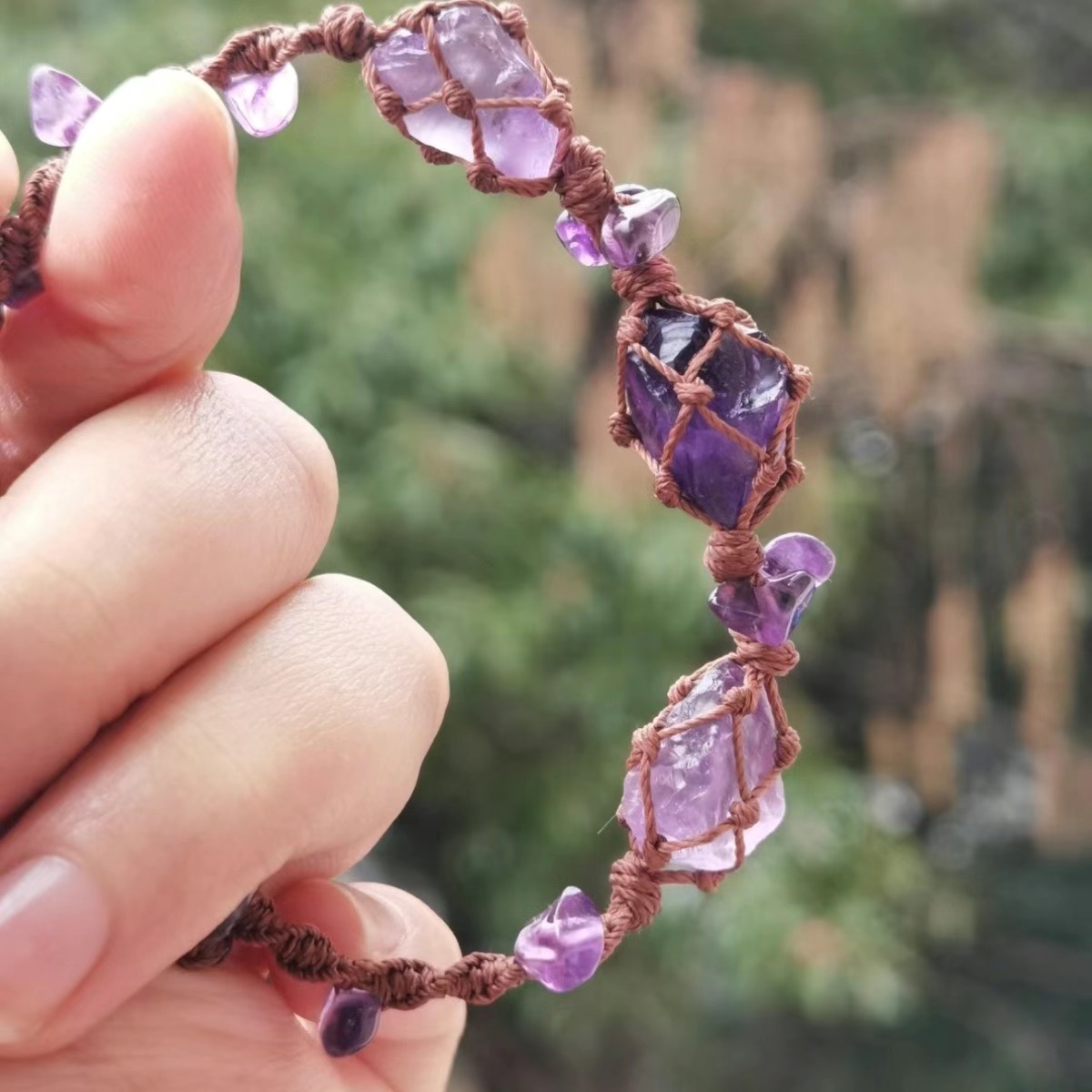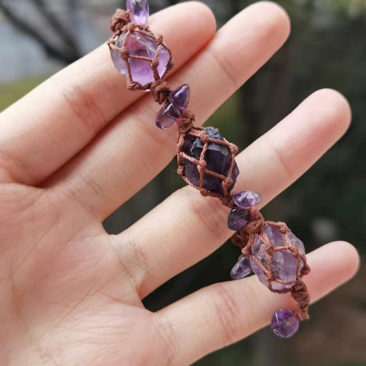 纯天然紫水晶原石编绳小众编织手绳macrame水晶原创手链高级礼物