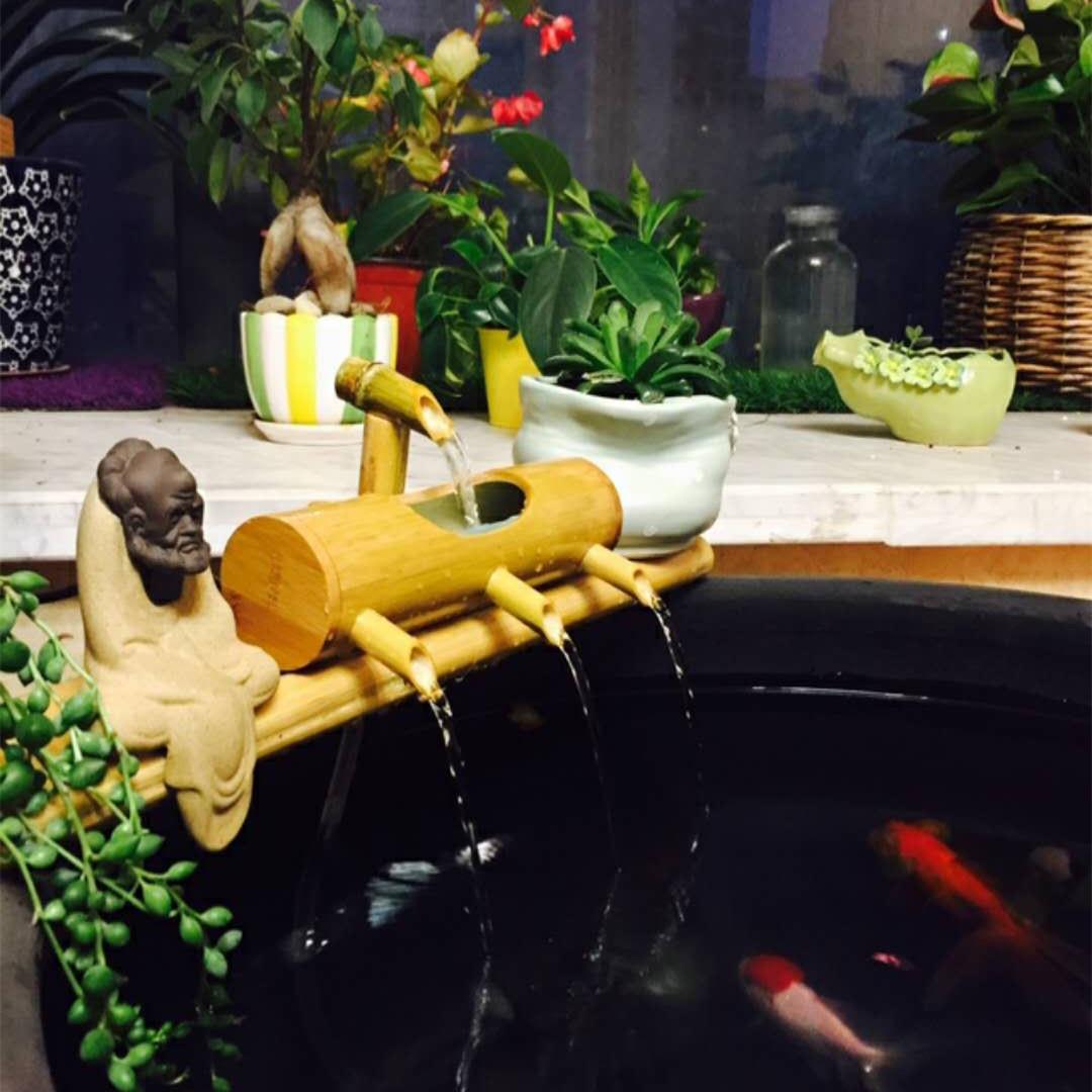 陶瓷鱼缸流水竹子循环水摆件竹筒石槽装饰品过滤器制氧办公室招财