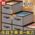 衣服收纳箱千鸟格家用衣柜分层整理收纳神器放衣物布艺折叠收纳筐