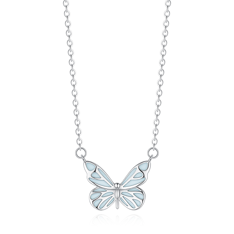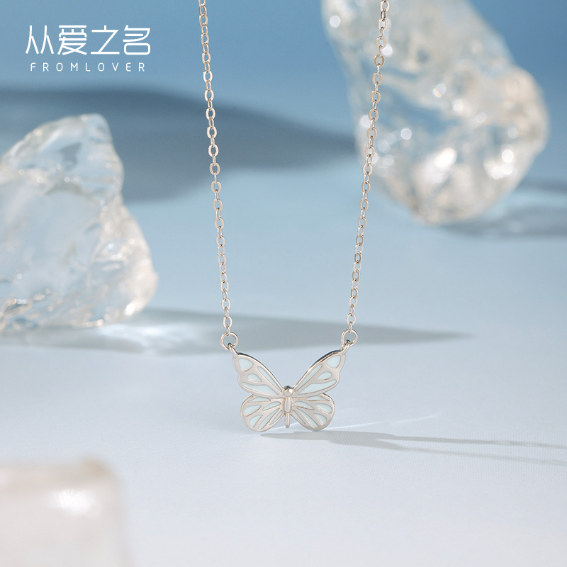 从爱之名夜光蝴蝶项链女纯银发光吊坠锁骨链生日礼物送女朋友饰品
