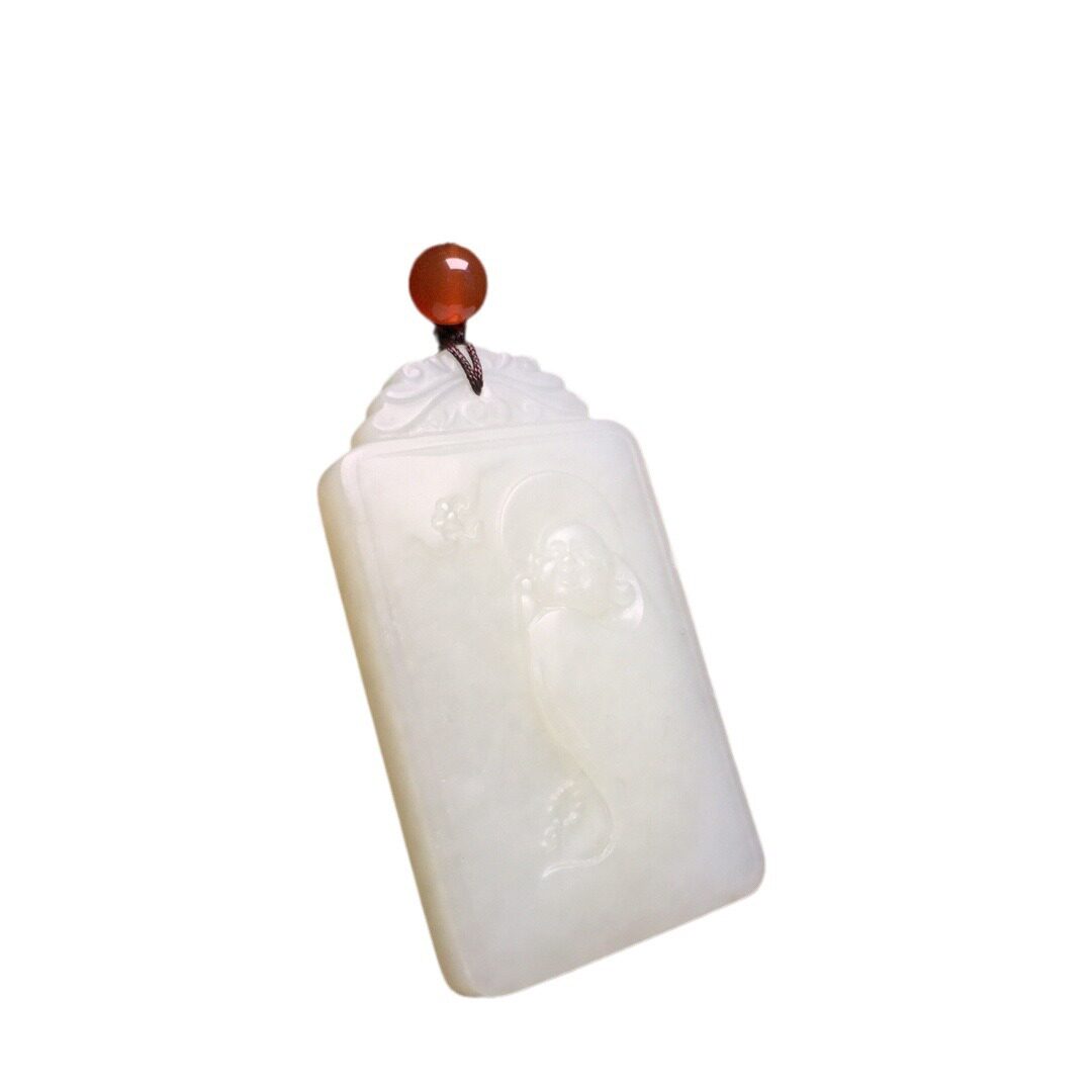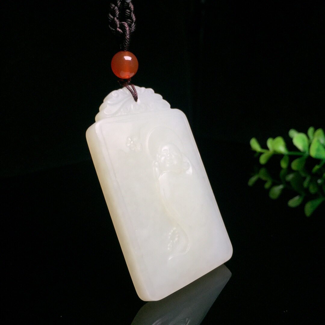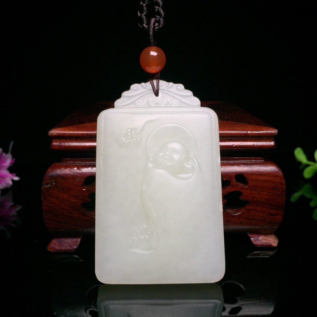 和田玉包衣佛玉石佛公百搭吊坠男女款白色玉佩挂件毛衣坠