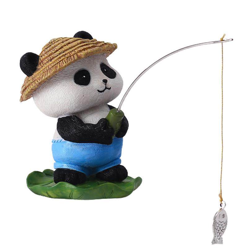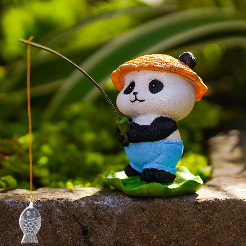 鱼缸水族箱造景熊猫钓鱼翁庭院流水鱼池假山乌龟缸微景观装饰摆饰