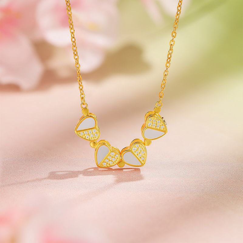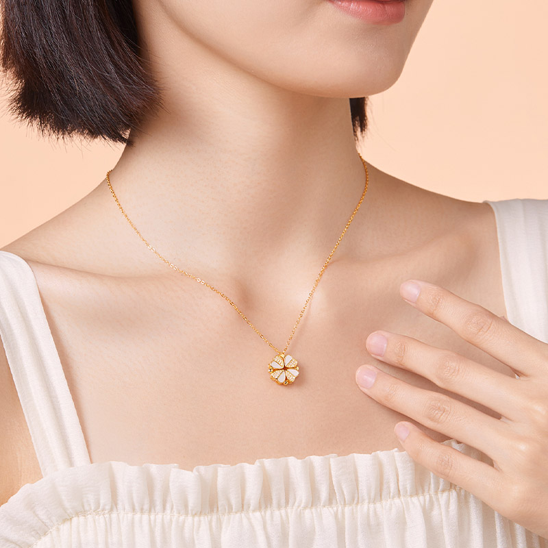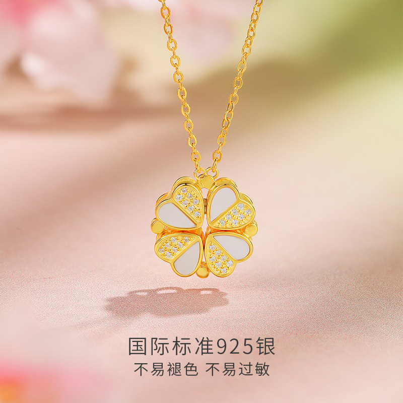 六桂福珠宝四叶草银吊坠项链女S925银金黄色套链生日礼物送女友