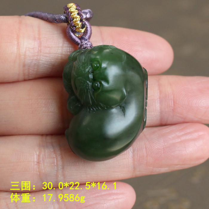 N脂份满分的碧玉籽料小猫咪挂件 和田玉 朕® 有原皮 开仓