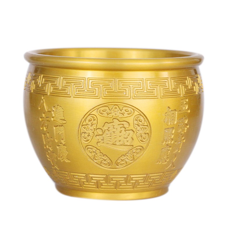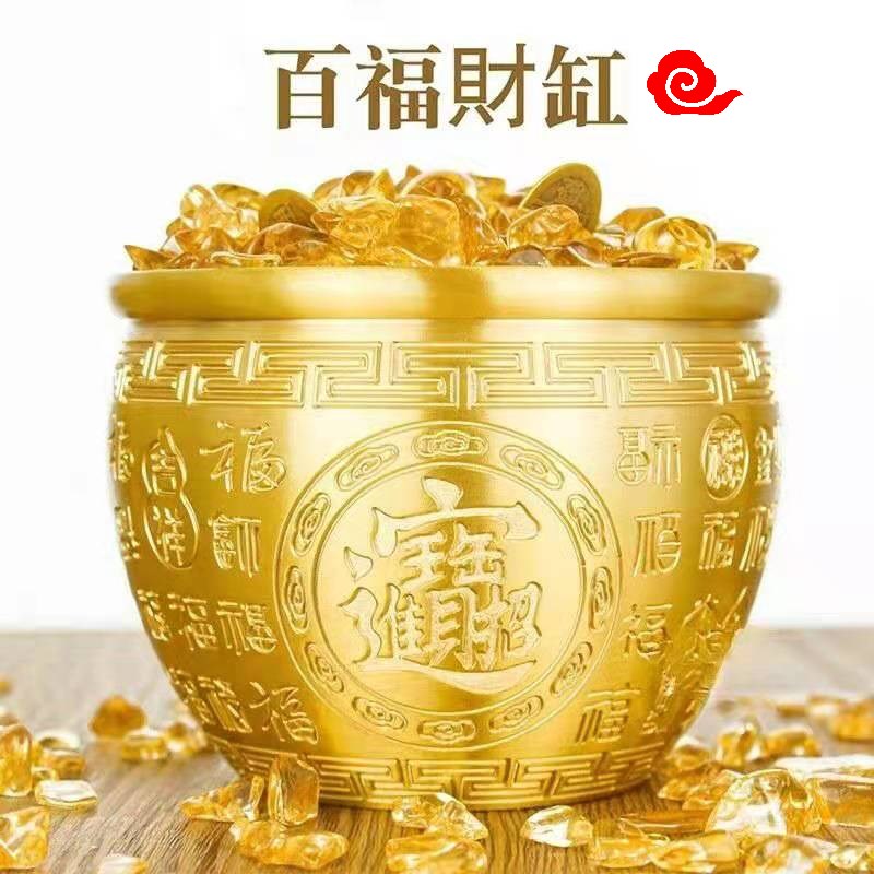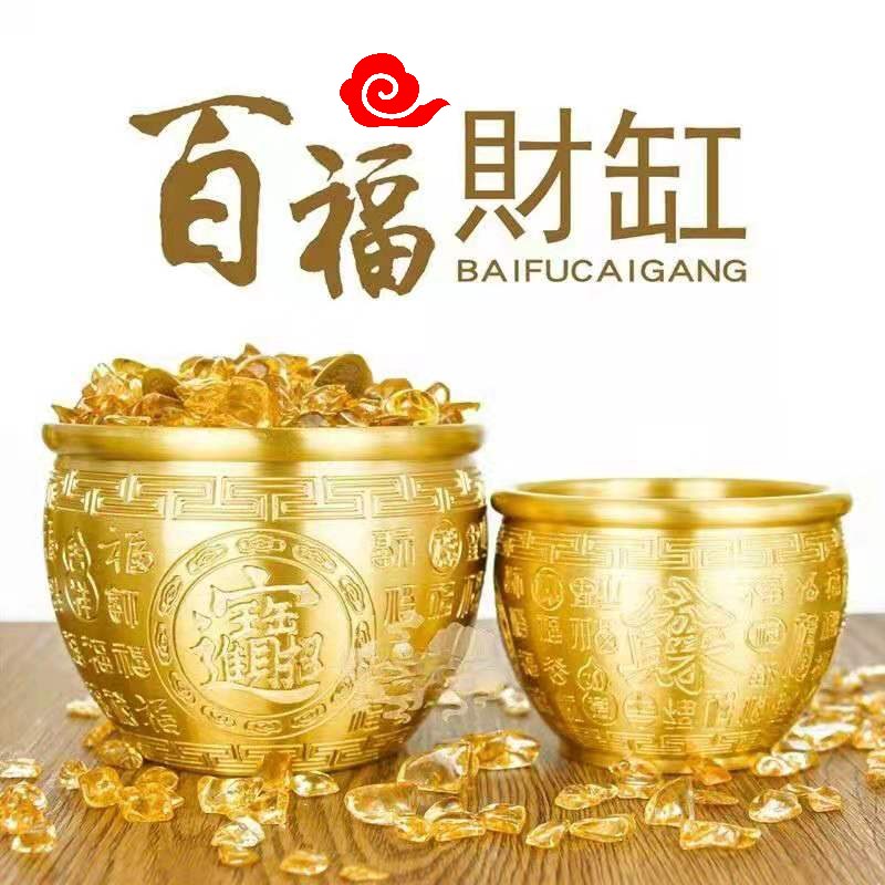 纯黄铜米缸铜缸百福招米聚宝盆摆件存钱罐铜N水缸福字缸家居客厅