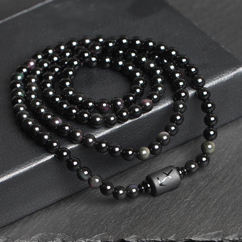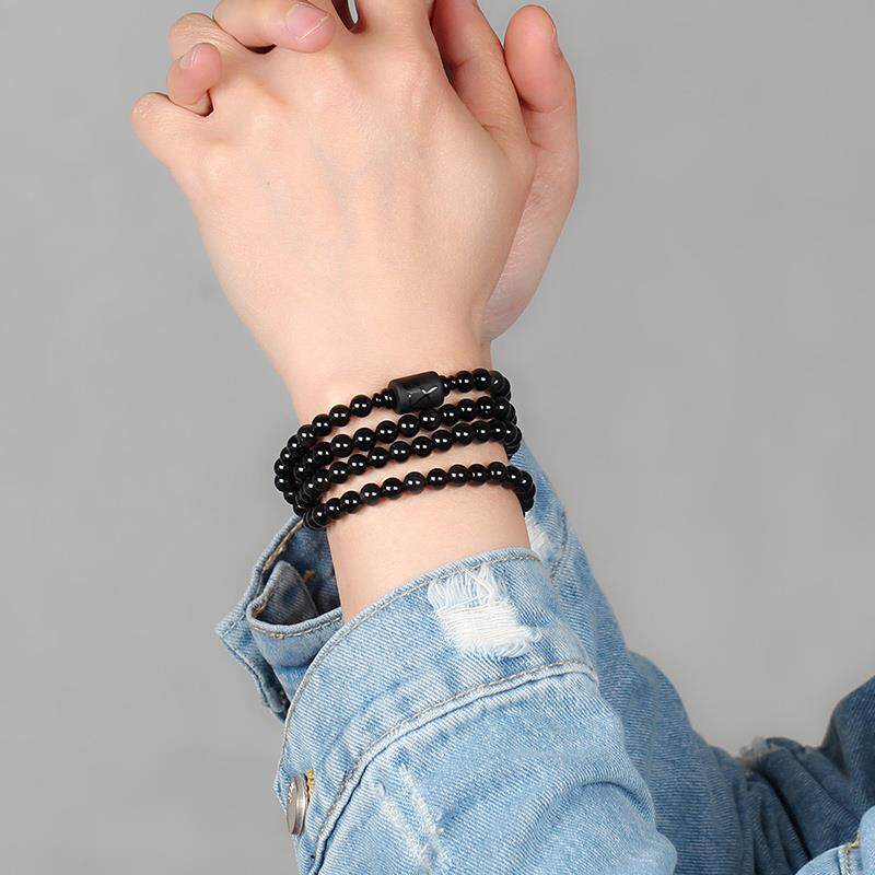 天然黑曜石十二星座多圈手链黑色珠子串珠散珠单圈手串男女款手串