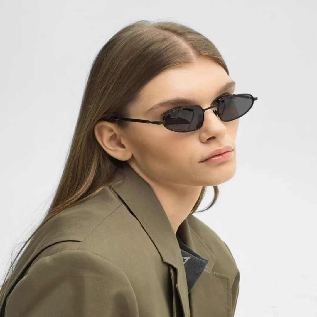 日系复古时尚高级感三角猫眼浅蓝墨镜女时髦金丝边Y2K太阳眼镜男