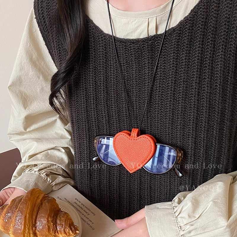 磁吸多功能皮革爱心项炼眼镜夹女高级感可携式包包挂饰太阳眼镜夹