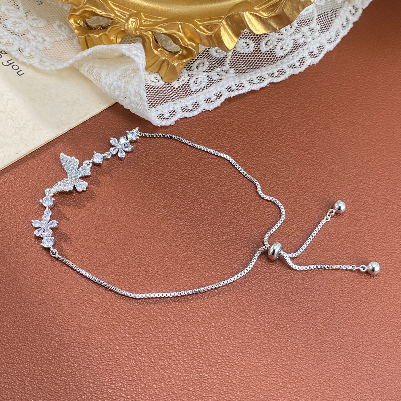 韩版精致时尚百搭满钻花瓣珍珠蝴蝶抽拉式手链女气质轻奢简约手饰