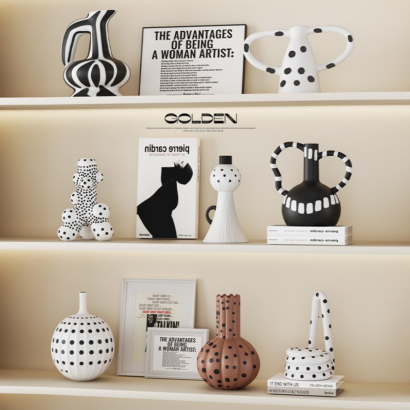黑白色波点简约高级感酒柜摆件客厅小众艺术品摆设现代桌面装饰品