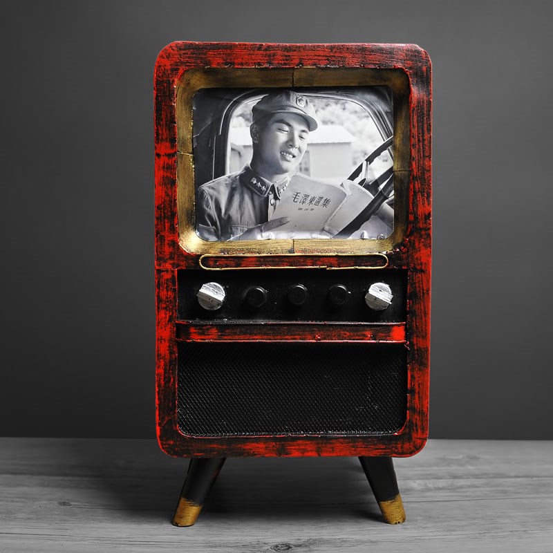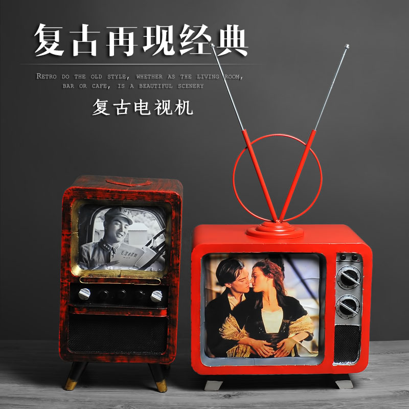 欧璟美 复古老式铁皮电视机模型 摄影道具服装店铺咖啡厅酒吧装饰