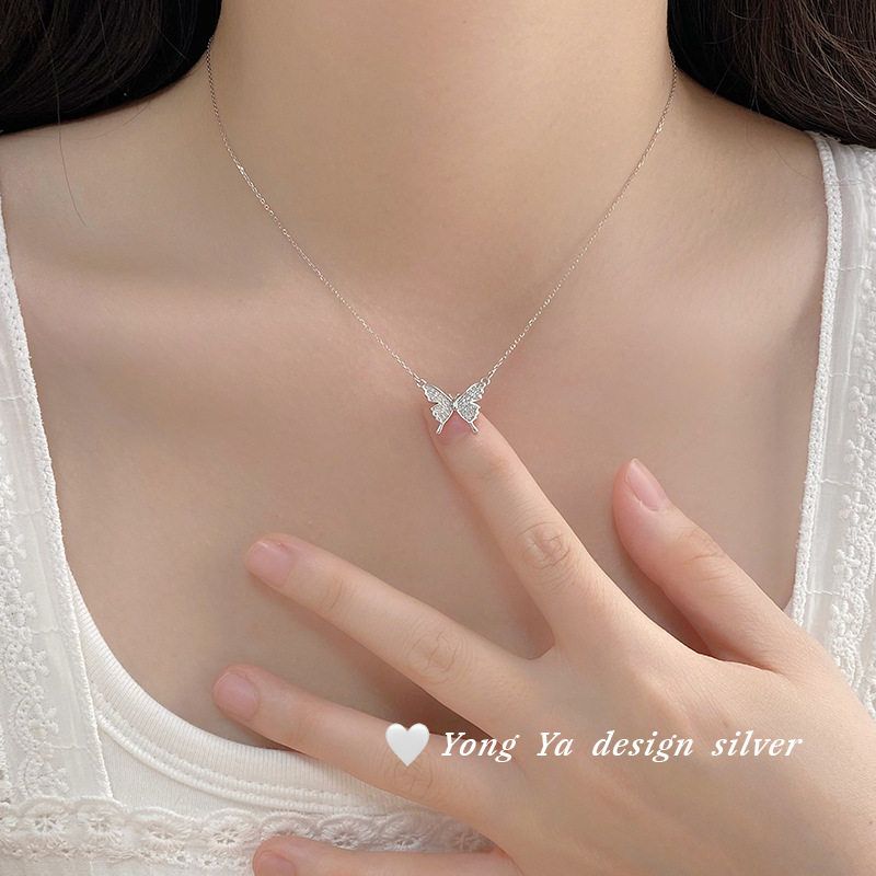 S925纯银夏季新款简约ins蝴蝶项链气质锆石锁骨链冷淡风轻奢百搭