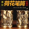 升级压铸b款铜笔筒摆件之荷花鱼款 实心铜笔筒摆件